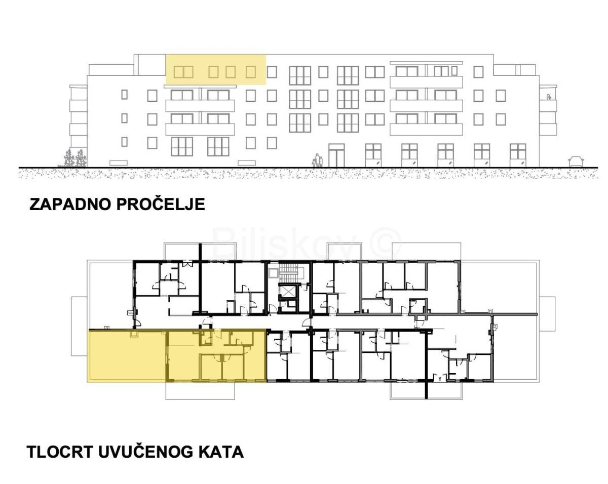 Četverosoban stan neto površine 85,61 m2 na 3. katu od ukupno 4 kata nove stambene zgrade.