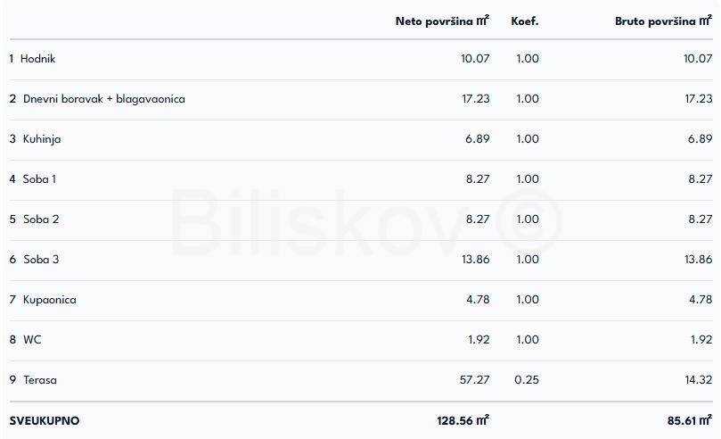 Ukupna bruto površina: 128,56m2