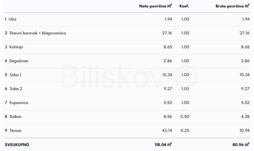 Ukupna bruto površina: 121.37