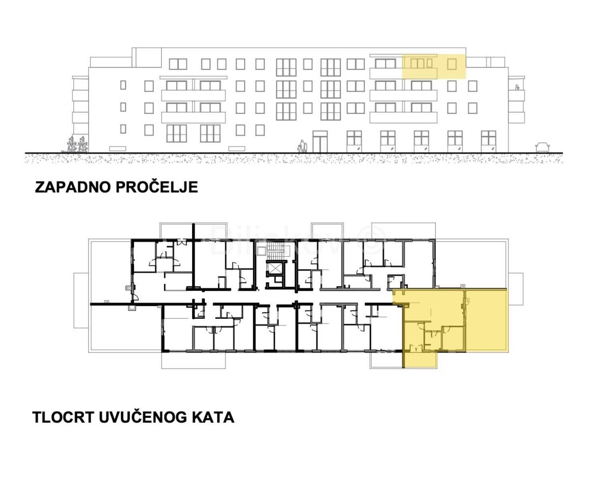 Trosoban stan neto površine 83,28 m2 na 3. katu od ukupno 4 kata nove stambene zgrade.