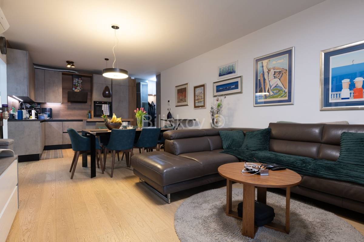 Stan se prodaje kompletno namješten dizajnerskim namještajem, pažljivo uklopljenim u prostor.