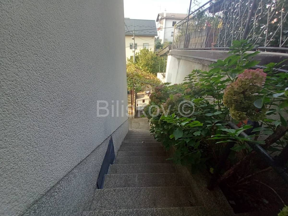 Iz stana se izlazi na terasu koja se nalazi na stražnjem dijelu zemljišta. Na terasi se nalazi i ostava te vanjsko stubište za tavan. Odmah uz terasu dolazi i veliki vrt.
