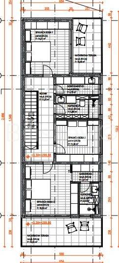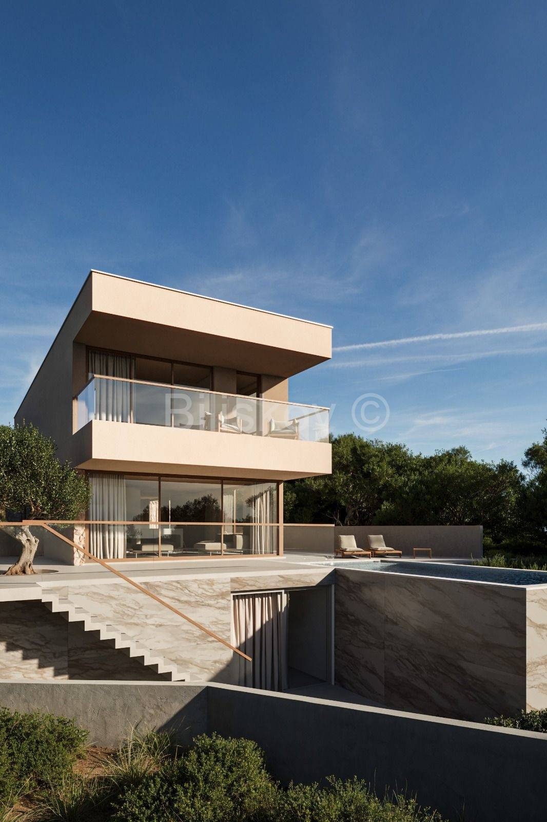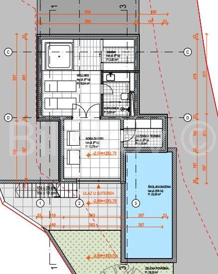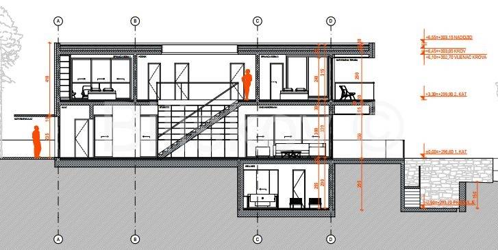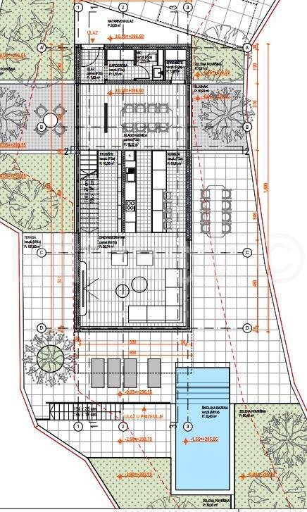 Zemljište se nalazi unutar građevinskog područja naselja te dolazi s izrađenim projektom za modernu vilu s bazenom površine 205 m², raspoređene na tri etaže.