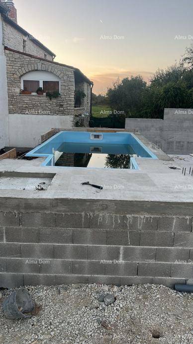 Prodaje se kuća u visokoj fazi gradnje, blizu Kanfanara. Stambena površina kuće iznosi 160 m², a sastoji se u prizemlju od: