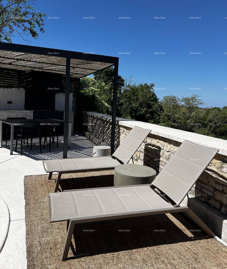 U donjem dijelu nalazi se ljetna kuhinja, grijani bazen i dnevni boravak za uživanje.