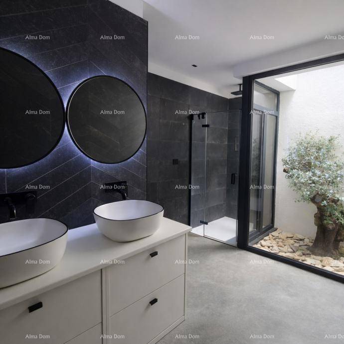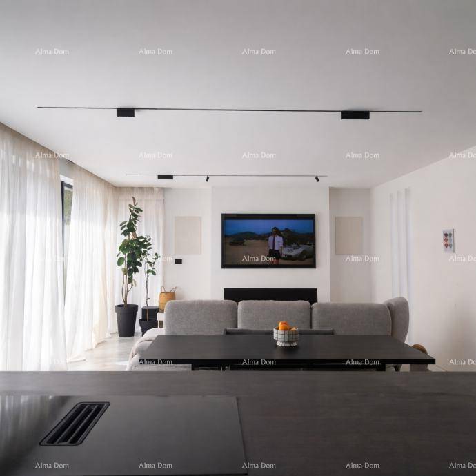 U ponudi je moderno izgrađena prizemna kuća stambene površine 143 m², smještena na izuzetno mirnoj lokaciji, a ipak nadomak starog grada Labina do kojeg se može stići i pješice.