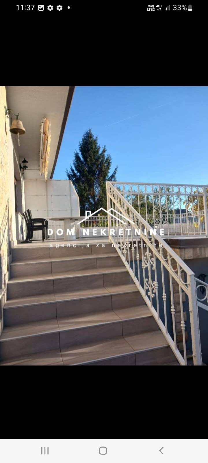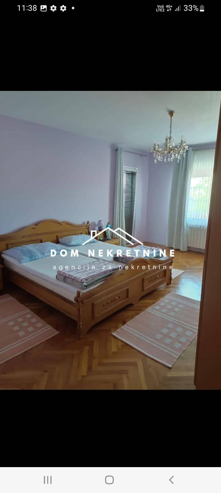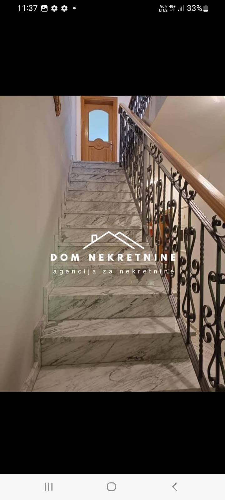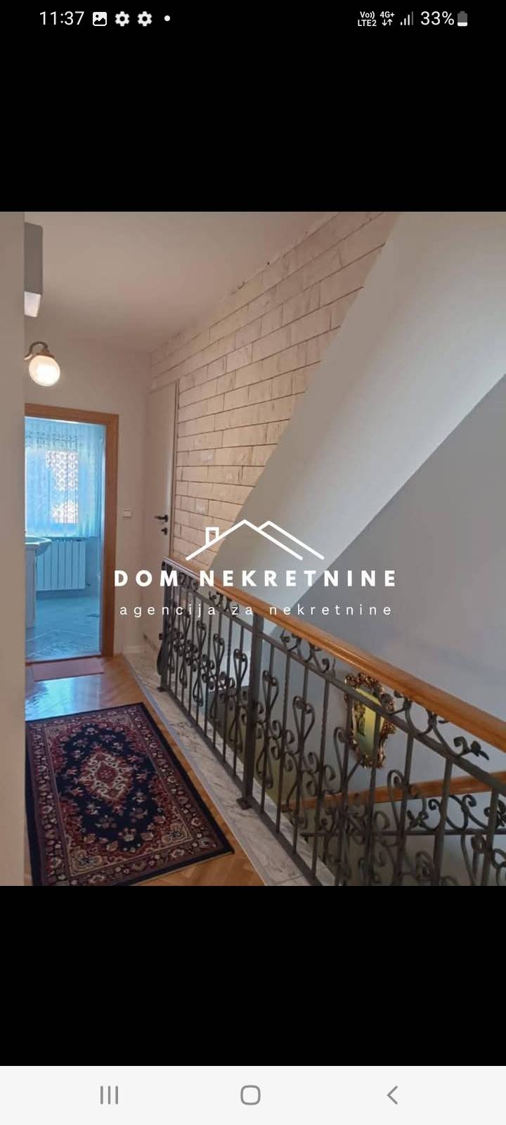 Prodaje se kuća stambene površine 324 m2 u mirnom i prekrasnom naselju. U kući nisu potrebna nikakva ulaganja, potpuno je namještena i prodaje se sa namještajem. 7 soba, velika dnevna soba, kuhinja, 2 nova kupatila, velika terasa, velika garaža iz koje se ulazi u kuću, dvorište, roštilj. U prizemlju se nalazi i poslovni prostor. Podrum 84.5 m2. Postavljen je novi krov i nova fasada. Parket u cijeloj kući. Centralno grijanje. 5 parkirnih mjesta.