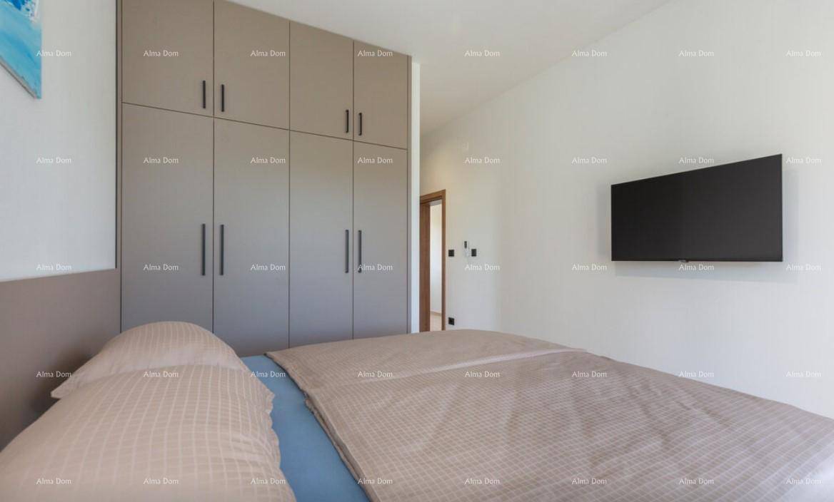 U prizemlju se kuhinja s blagavaonicom te dnevnim boravkom s izlazom na terasu, kupaonica. S terase izlaz na bazen i vanjsku terasu.