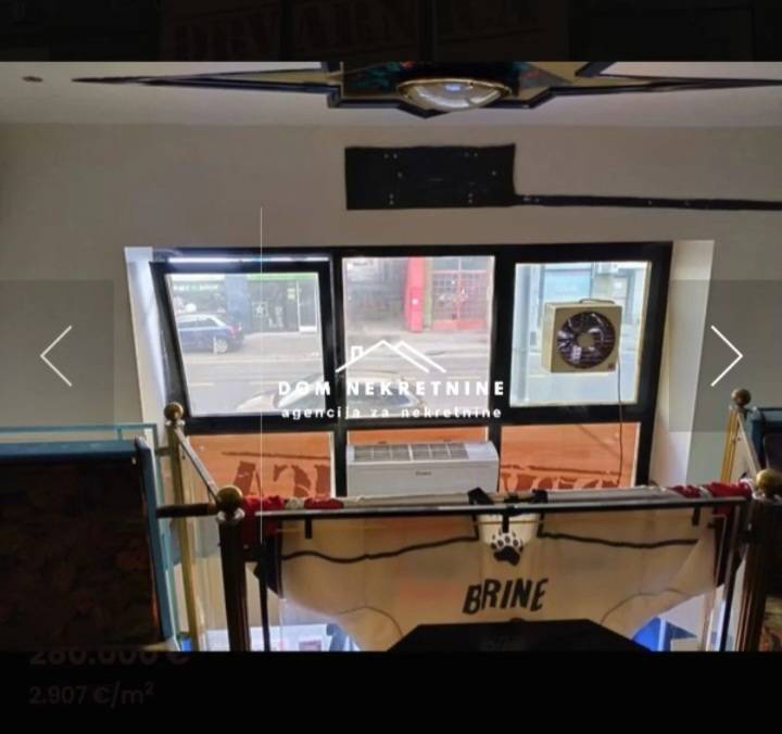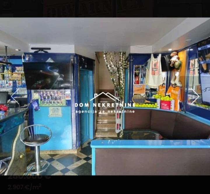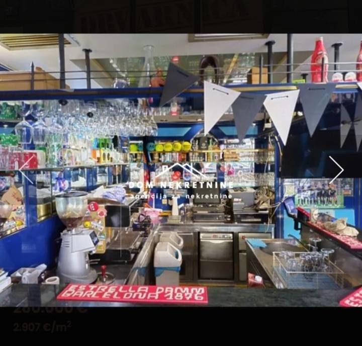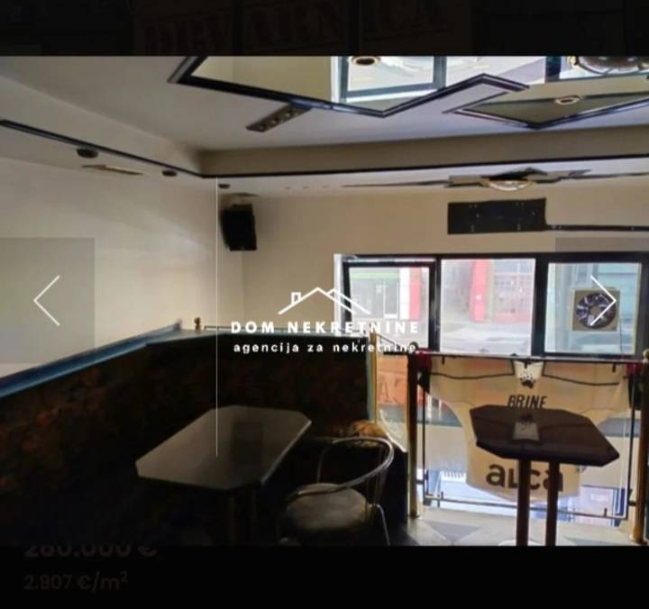 Prizemlje je površine 34,83 m2 galerija 34,84 a podrum 26,66 m2 . U prizemlju se nalazi šank, separei i toalet, na galeriji se također nalaze separei i toalet. Podrum je podijeljen na dva dijela te se u manjem dijelu nalazi skladište i kotlovnica. Galerija ima veliku staklenu stijenu s koje se pruža pogled na ulicu. Postavljena nova klima. Telefonska linija ️ gradska kanalizacija ️ gradski plin ️ gradski vodovod ️ građevinska dozvola ️ uporabna dozvola ️ vlasnički list ️ internet ️ blizina busa ️ blizina tramvaja ️ klima ️