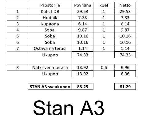 Stan A3, koji se nalazi na 1. katu, ima 81.29 m2.