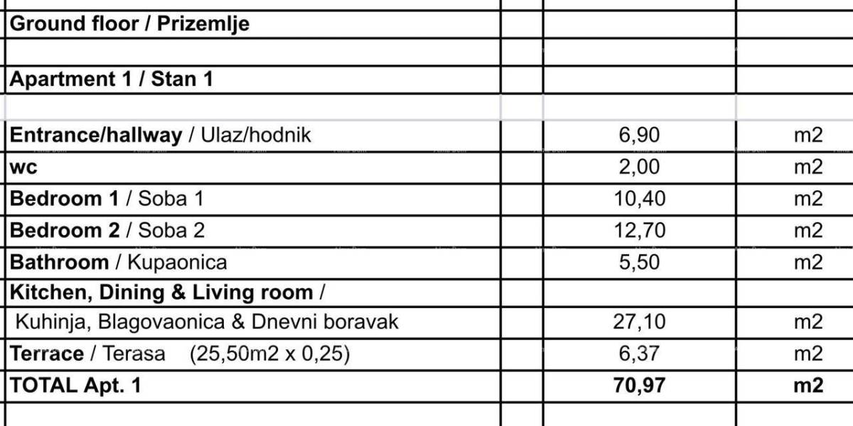 Stan površine 70.97 m2 nalazi se u prizemlju zgrade.