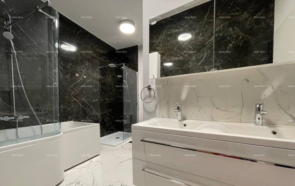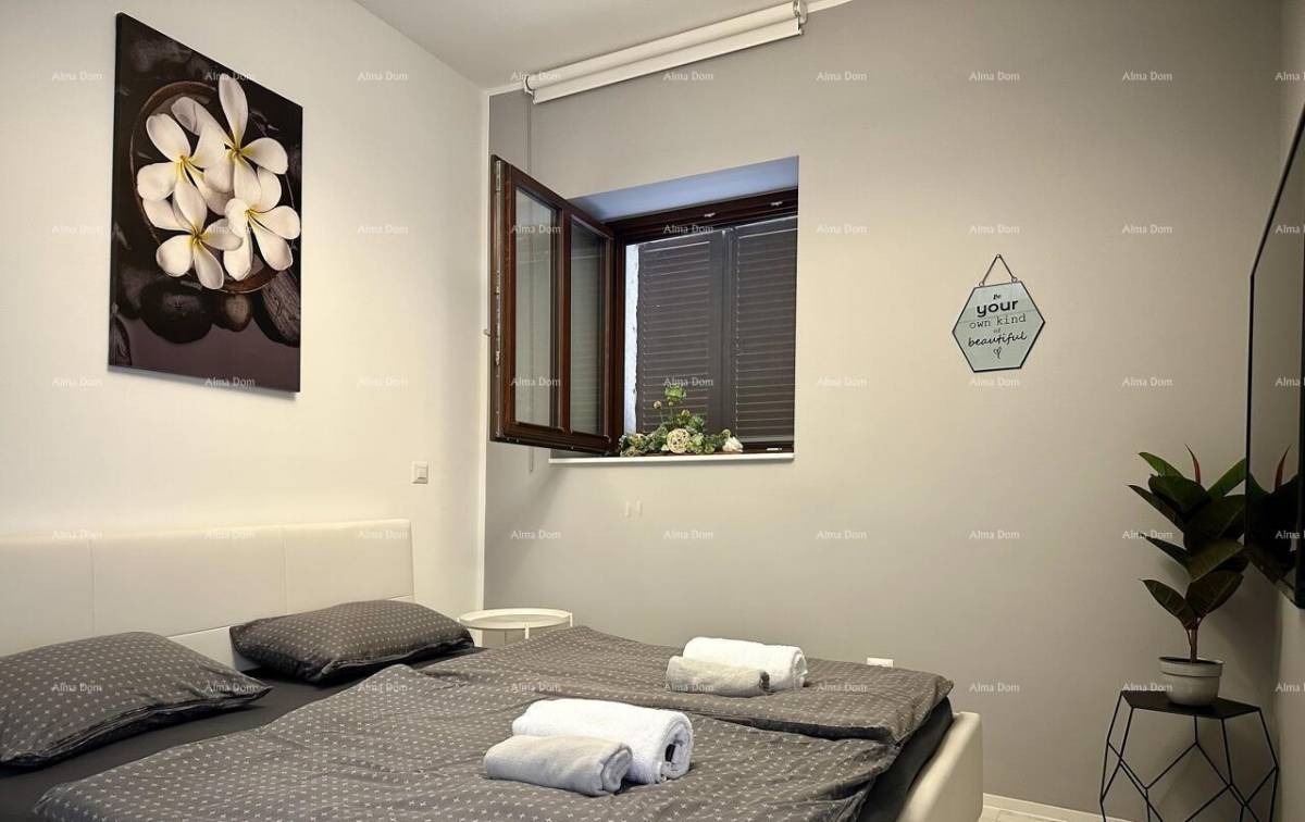 Komforan dnevni boravak s kuhinjom i blagovaonicom te izlazom na idiličnu terasu i uređeno dvorište, spavaća soba, velika kupaonica s kadom i tušem, vešeraj, podno grijanje u cijelom stanu s pristupom WIFI, komarnici na prozorima, klima u svim sobama , video portafon .