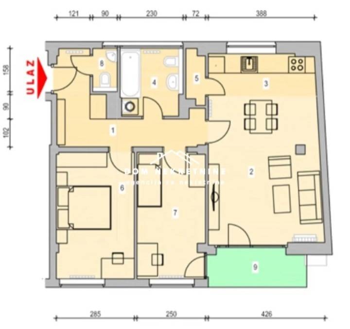 Zgrada posjeduje vlastiti prostrani vrt za sve stanare s roštiljem, klupama i stolovima. Orijentacija stana sjever - jug. U blizini tramvajska stanica - 10 m, škola - 200 m, vrtić - 700 m, liječnik - 1000 m, trgovački centri - 500 m.