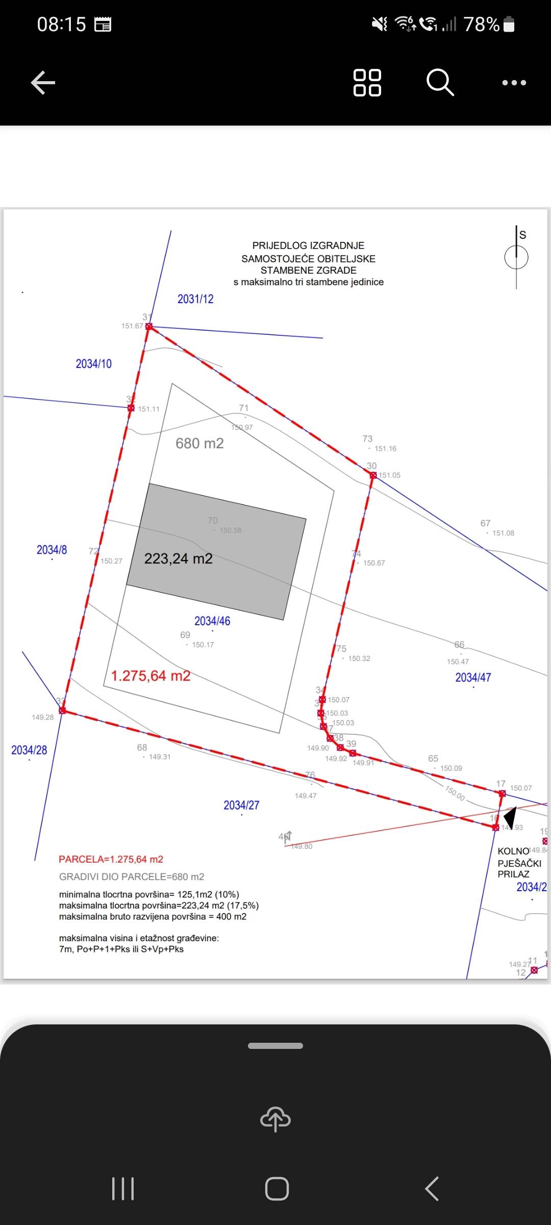 Po prostornom planu dozvoljena je gradnja do 3 stambene jedinice ili samostojeću vilu (vidi sliku).