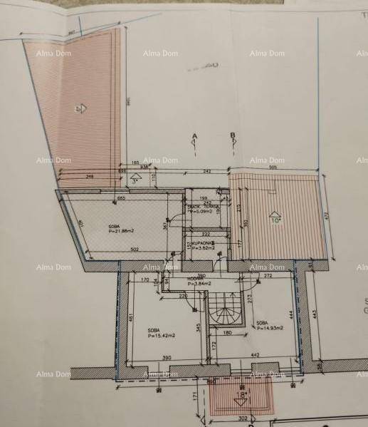 Na katu su tri sobe, kupaonica i natkrivena terasa.