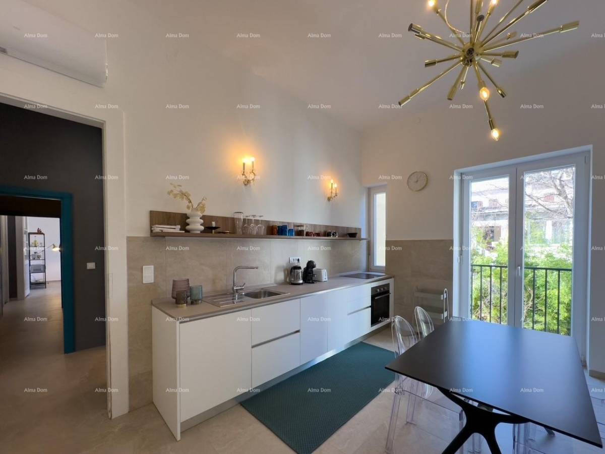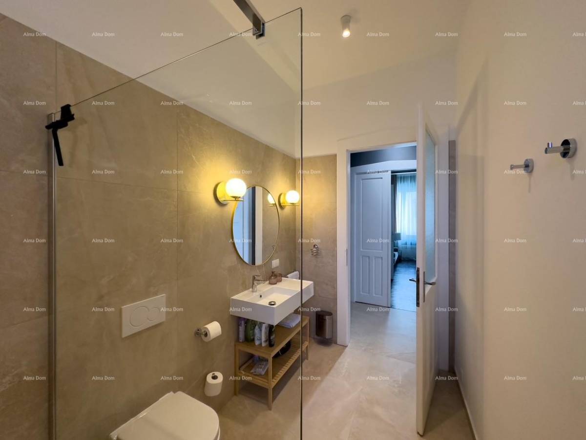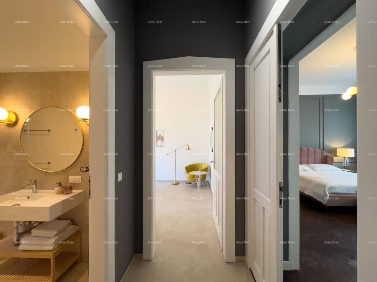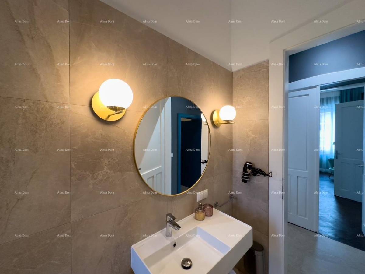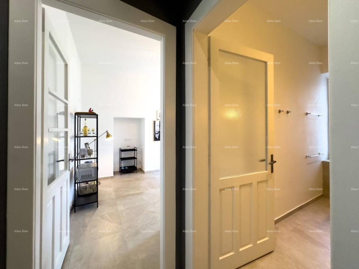 Prilikom renovacije stan je podijeljen u dva zasebna dijela koji se sastoje svaki od kuhinje sa blagovaonicom, kupatila i spavaće sobe.