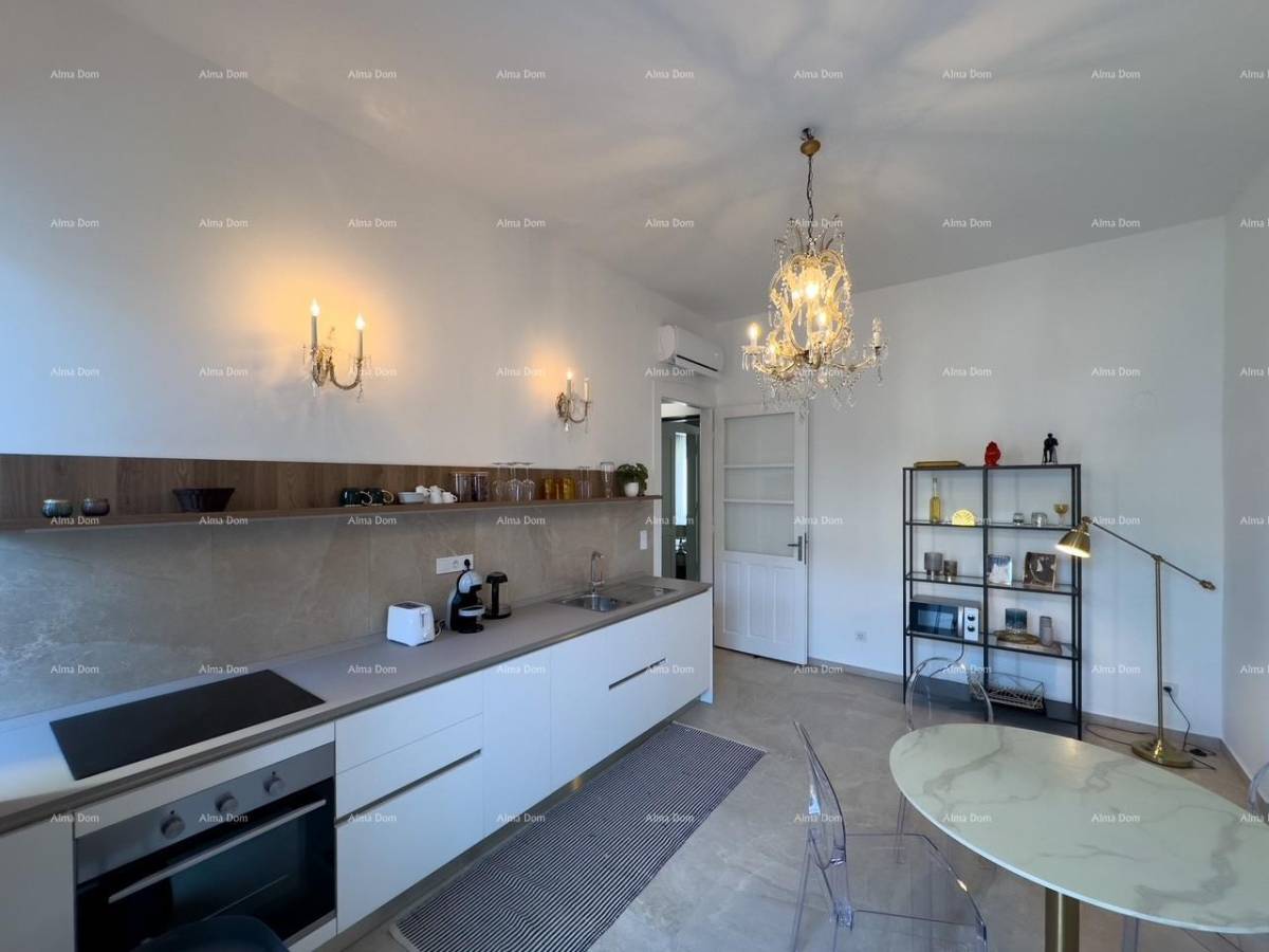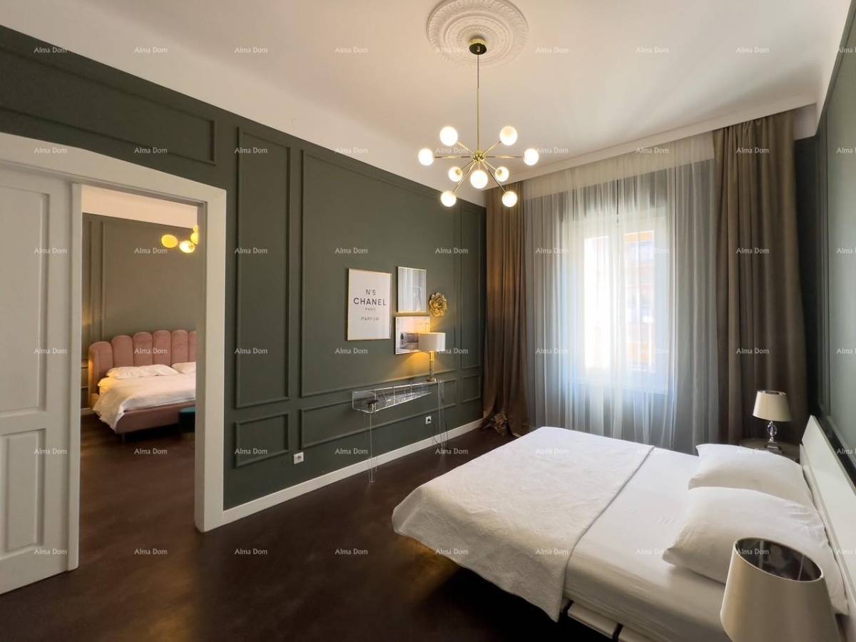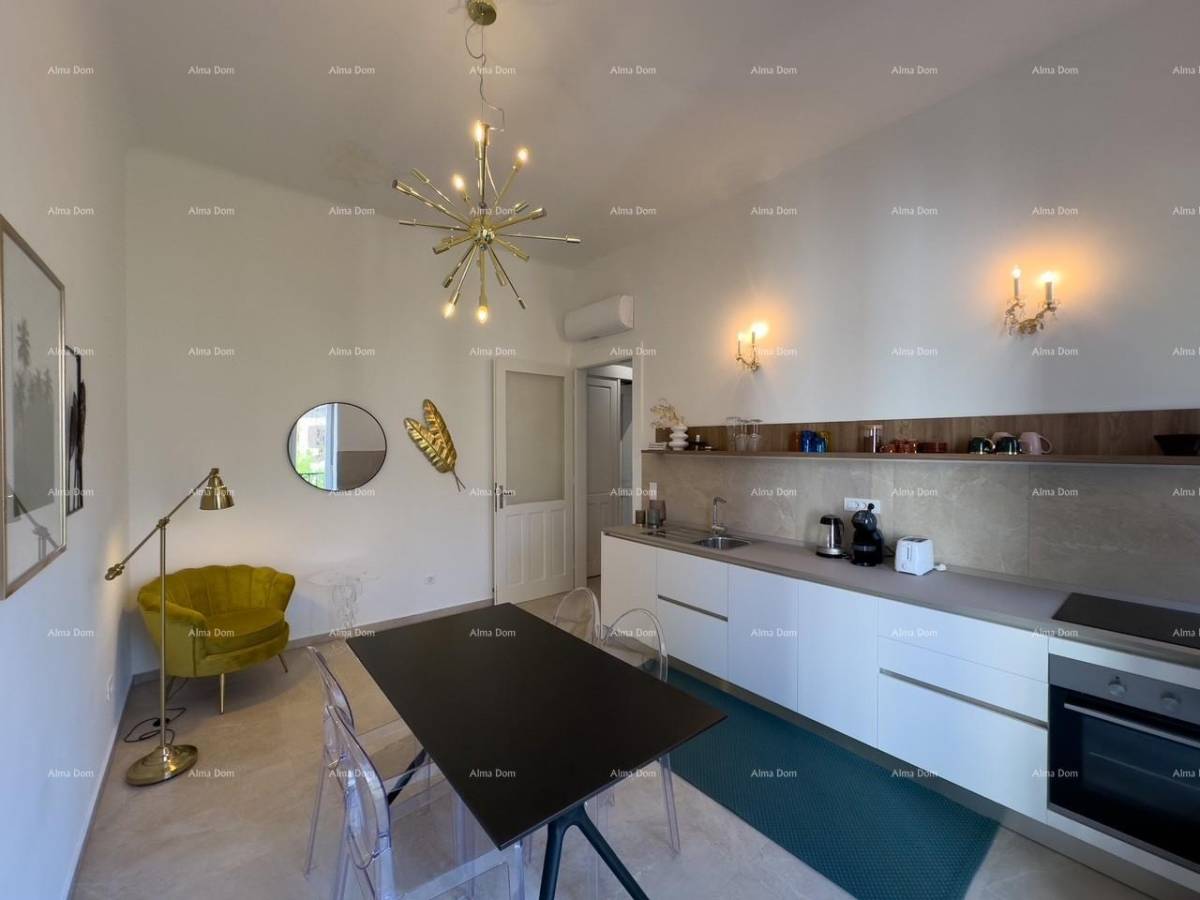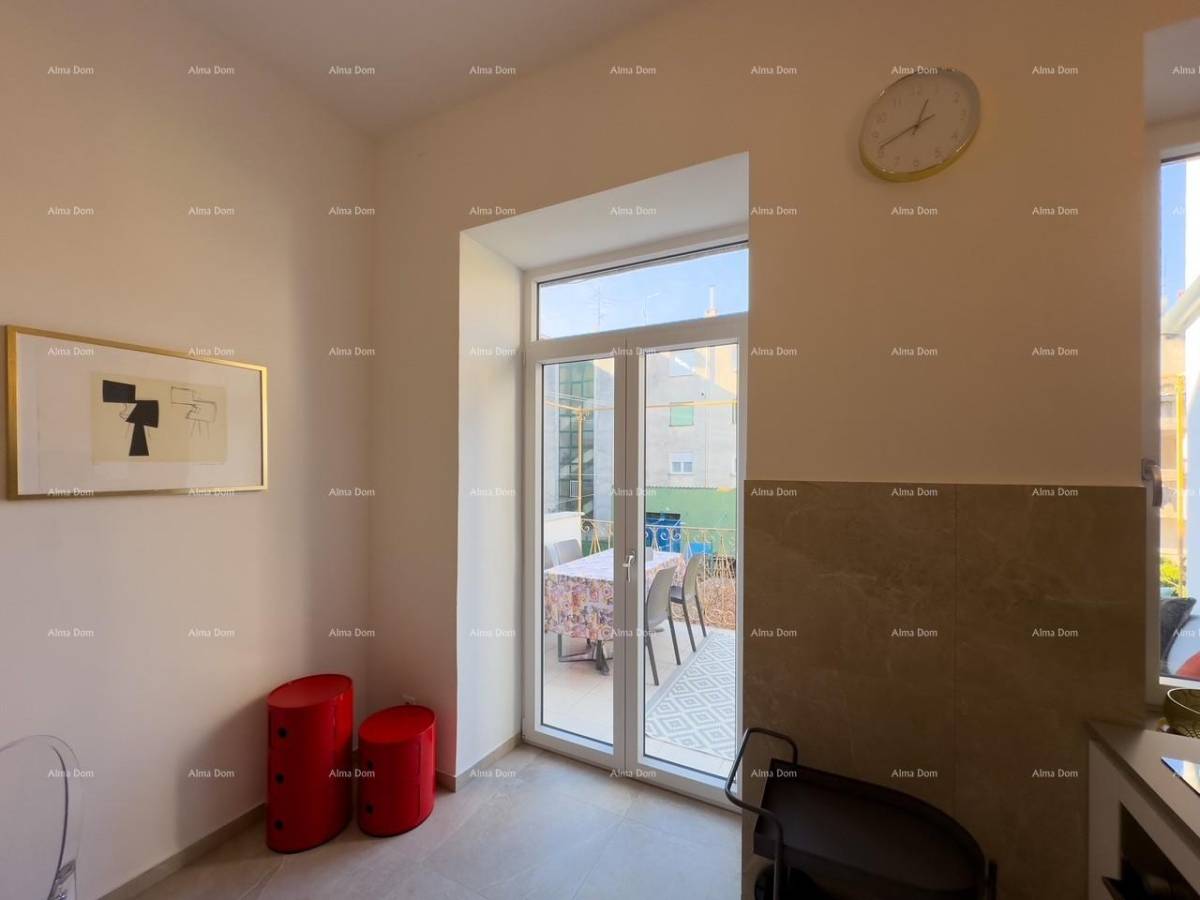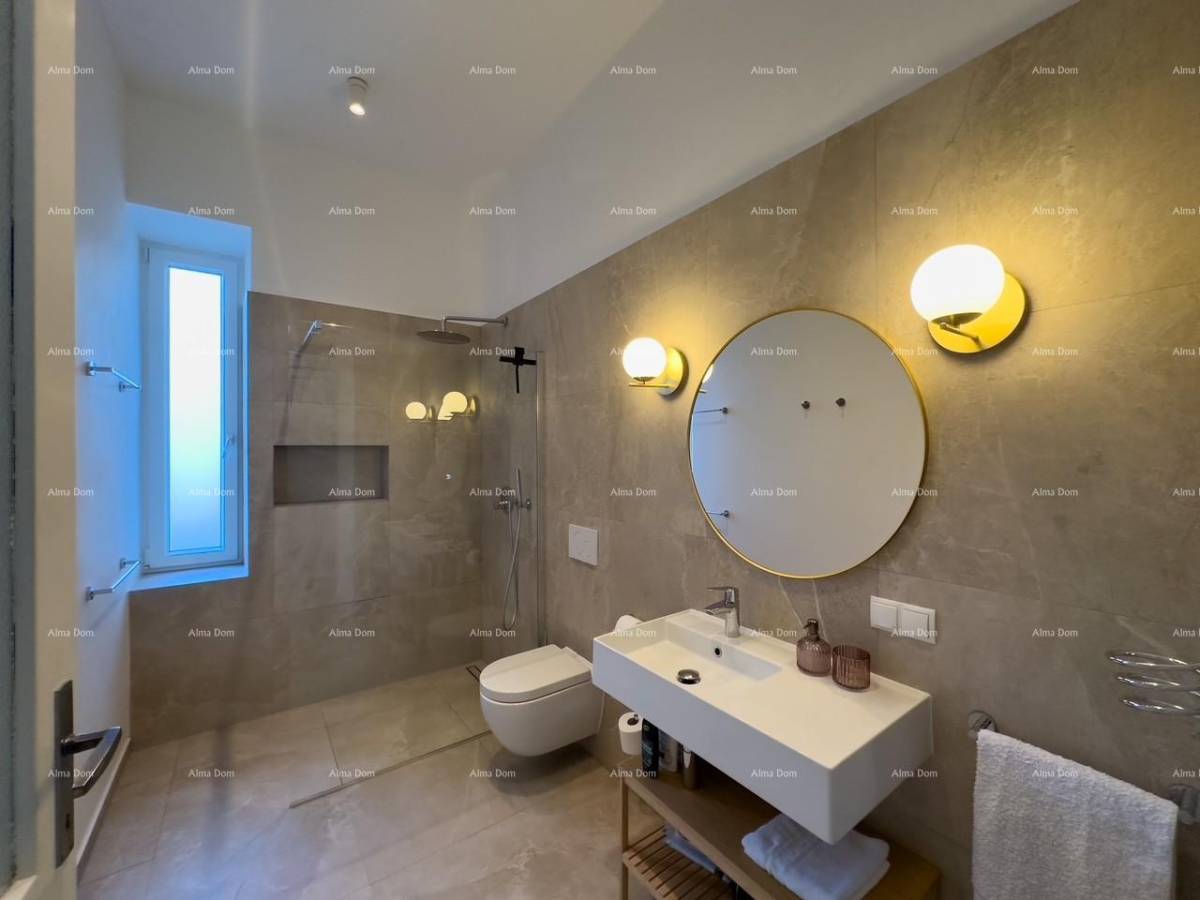 Prilikom renovacije stan je podijeljen u dva zasebna dijela koji se sastoje svaki od kuhinje sa blagovaonicom, kupatila i spavaće sobe.