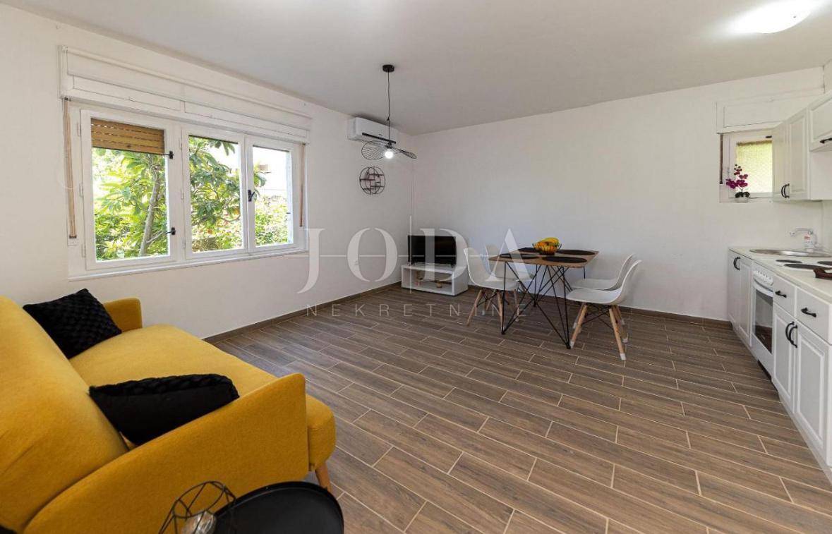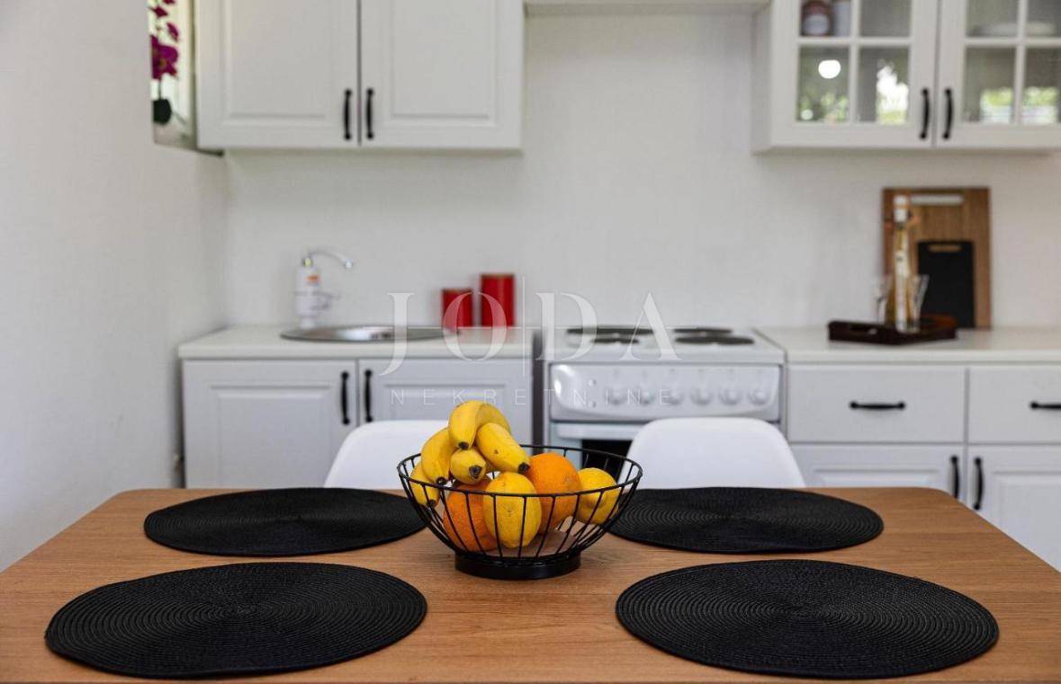 U samostojećoj kući prodaju se suteren i prizemlje na zajedničkoj okućnici od 600 m², smještenoj u mirnom susjedstvu blizu centra, plaže i svih sadržaja. Suteren ima kuhinju s blagovaonicom, kupaonicu i spavaću sobu, dok prizemlje nudi tri sobe, kupaonicu i kuhinju s blagovaonicom. Prostor je svijetao i funkcionalan, idealan za obitelj ili turističko iznajmljivanje. Uz nekretninu dolazi parkirno mjesto i okućnica pogodna za opuštanje.