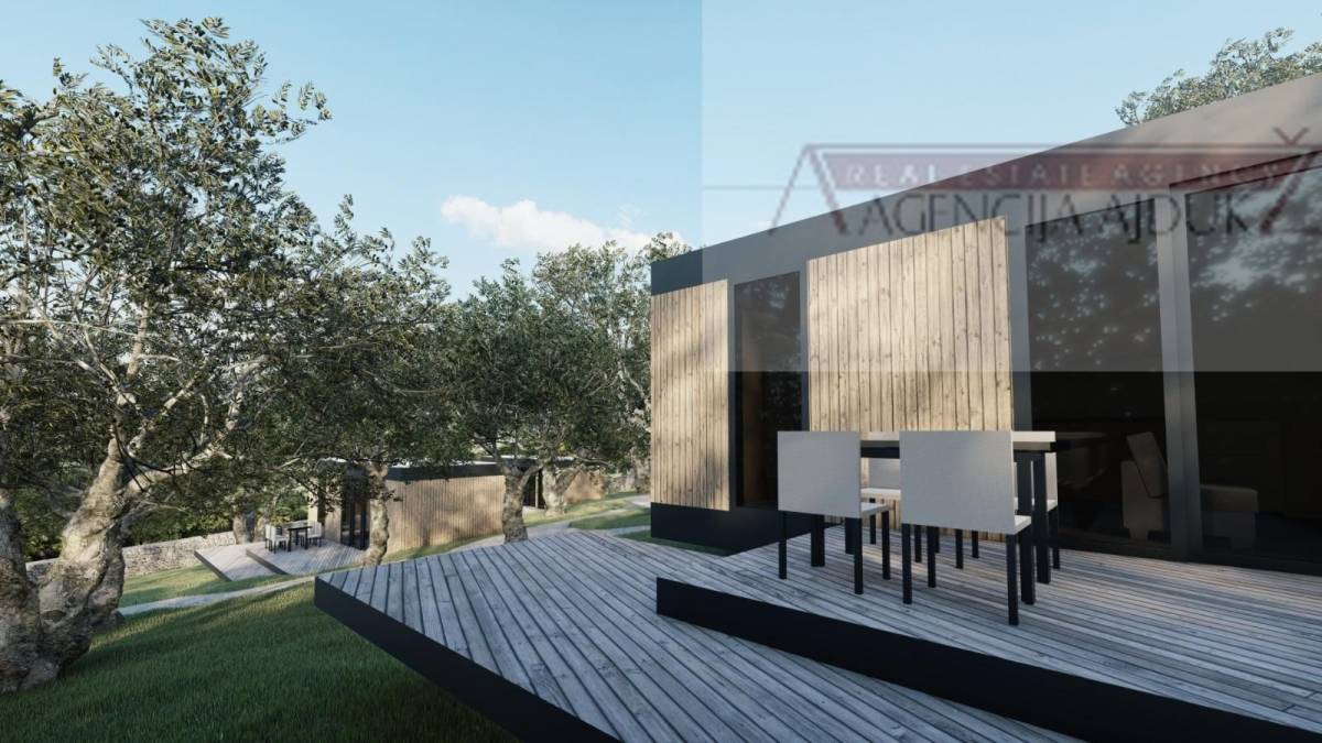 Zemljište je smješteno na odličnoj i osunčanoj lokaciji, južne orijentacije sa otvorenim i trajnim pogledom na more, od kojeg je udaljeno svega 600 metara, a intima i mir su zagarantirani.