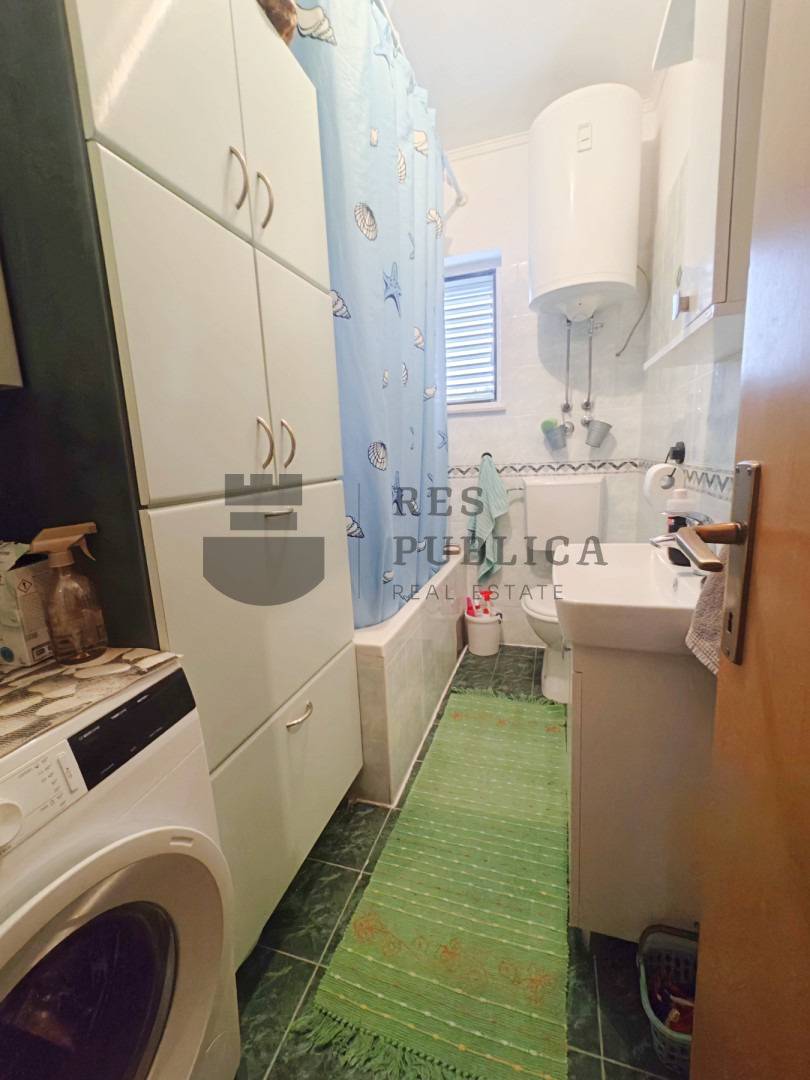 U prizemlju se nalazi poslovni prostor površine 47,60 m2, s visokim stropovima i vlastitim ulazom s glavne ulice. Prostor je idealan za različite djelatnosti ili kao dodatni izvor prihoda. Uz njega su smještena tri manja apartmana i praonica, što daje mogućnost turističkog iznajmljivanja ili smještaja radnika tijekom cijele godine.