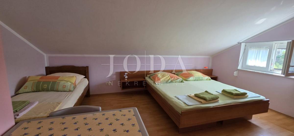 Na atraktivnoj lokaciji u blizini mora prodaje se prostrana obiteljska kuća smještena na parceli od 530 m². Objekt se proteže na četiri etaže – suteren, prizemlje, kat i visoko potkrovlje – i nudi višestruke stambene jedinice, idealne za obiteljski život i turistički najam.