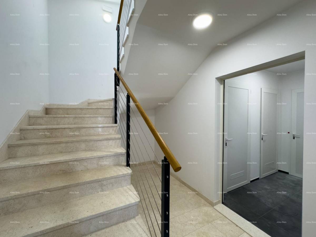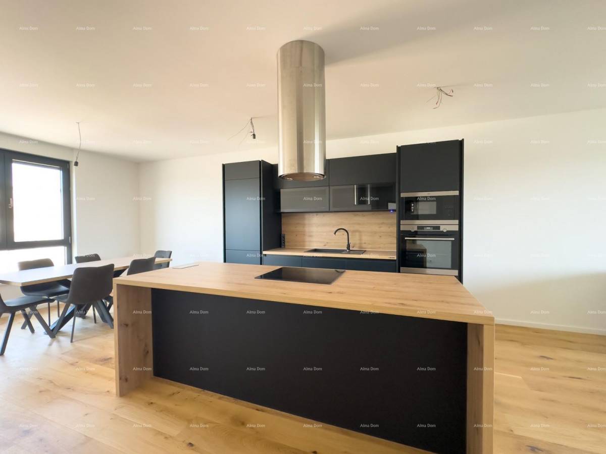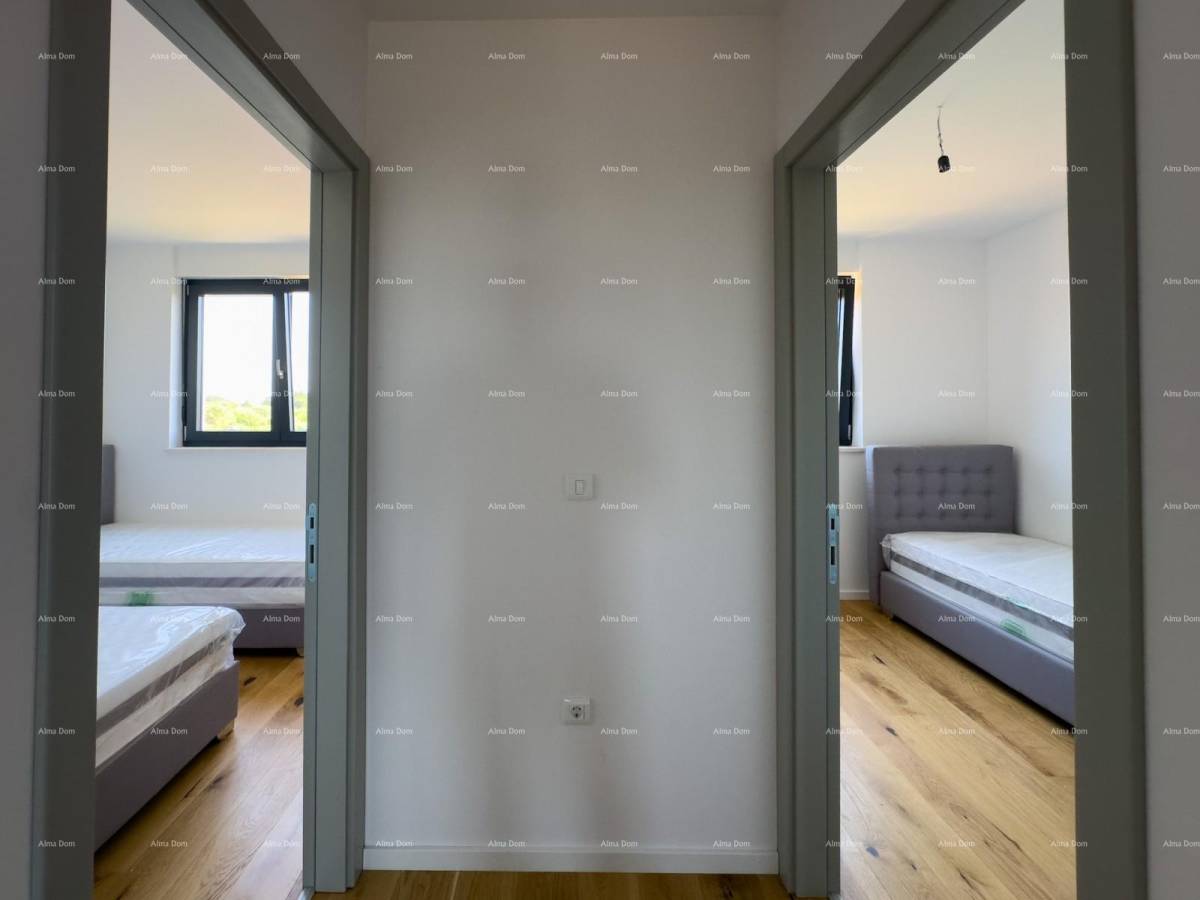 dvije terase, jedna velika prostrana terasa i jedna manja sa izlazom iz dnevnog boravka, idealan za obitelj ili kao investicija. Smješten na drugom katu novogradnje iz 2024. godine, opremljen je svim potrebnim sadržajima, uključujući centralno grijanje na struju, klimu i podno grijanje. Uživajte u blizini centra grada, udaljenog 3500 m, te prekrasne obale, samo 5000 m daleko. Uz dva vlastita parking mjesta i spremište, ovaj stan predstavlja idealno mjesto za život.