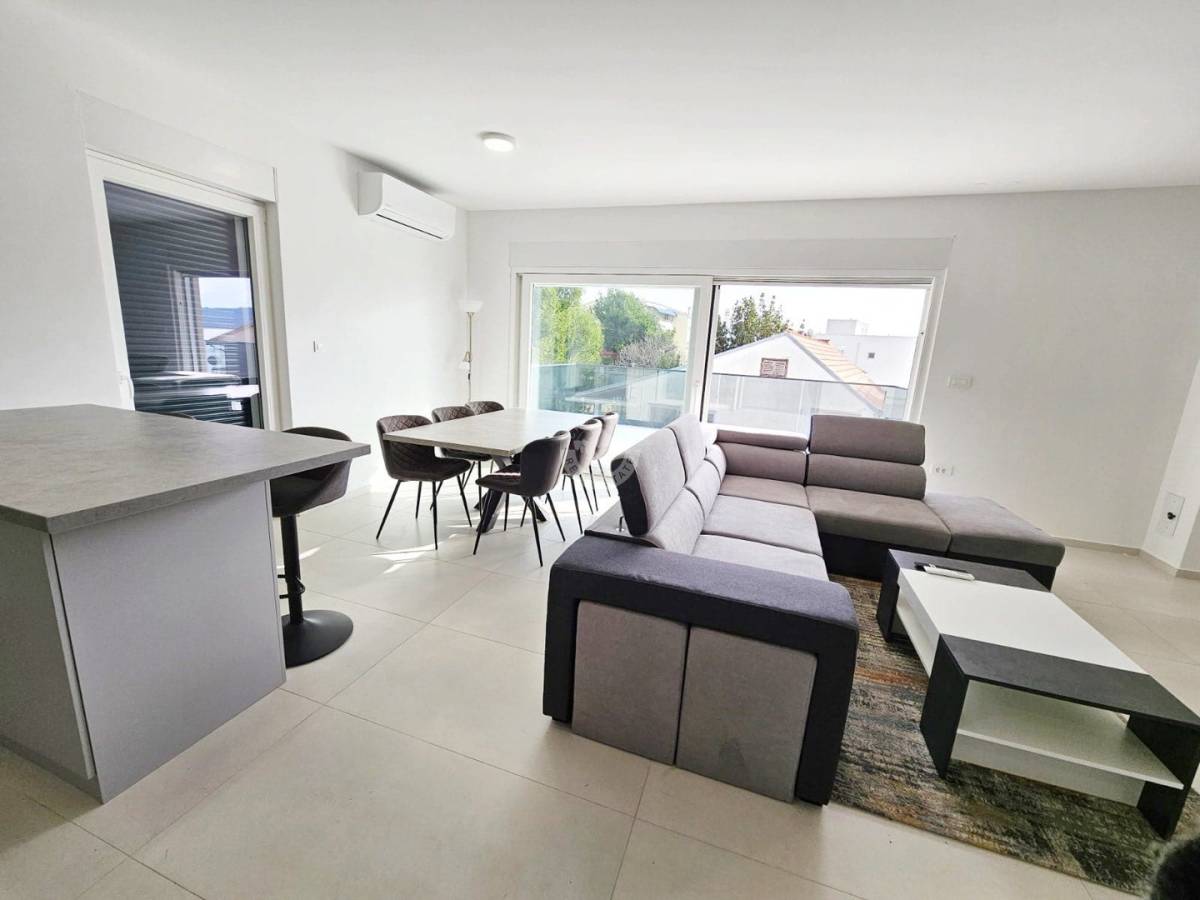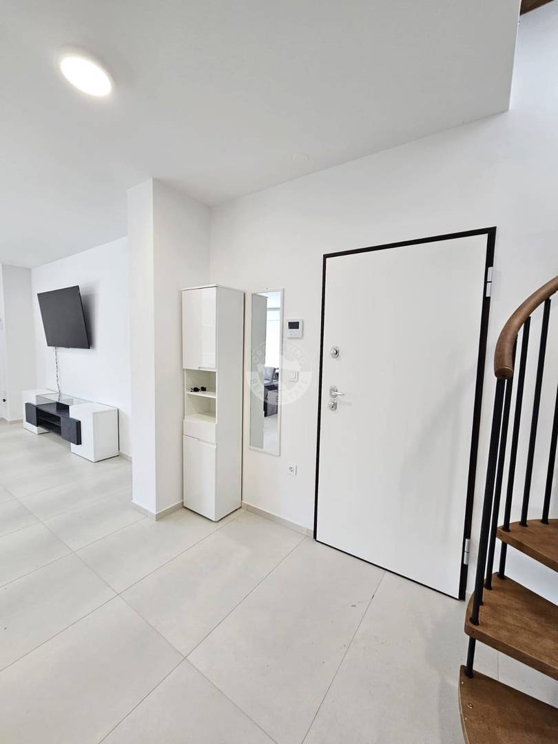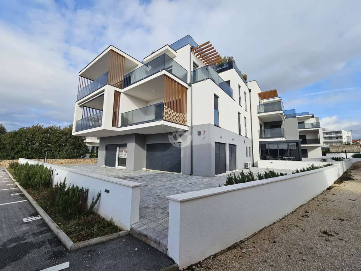 Nalazi se u novoizgrađenoj stambenoj zgradi na 2. (zadnjem) katu. Stanu pripada i krovna terasa ukupne površine 98 m2 kao i vanjsko parkirno mjesto.