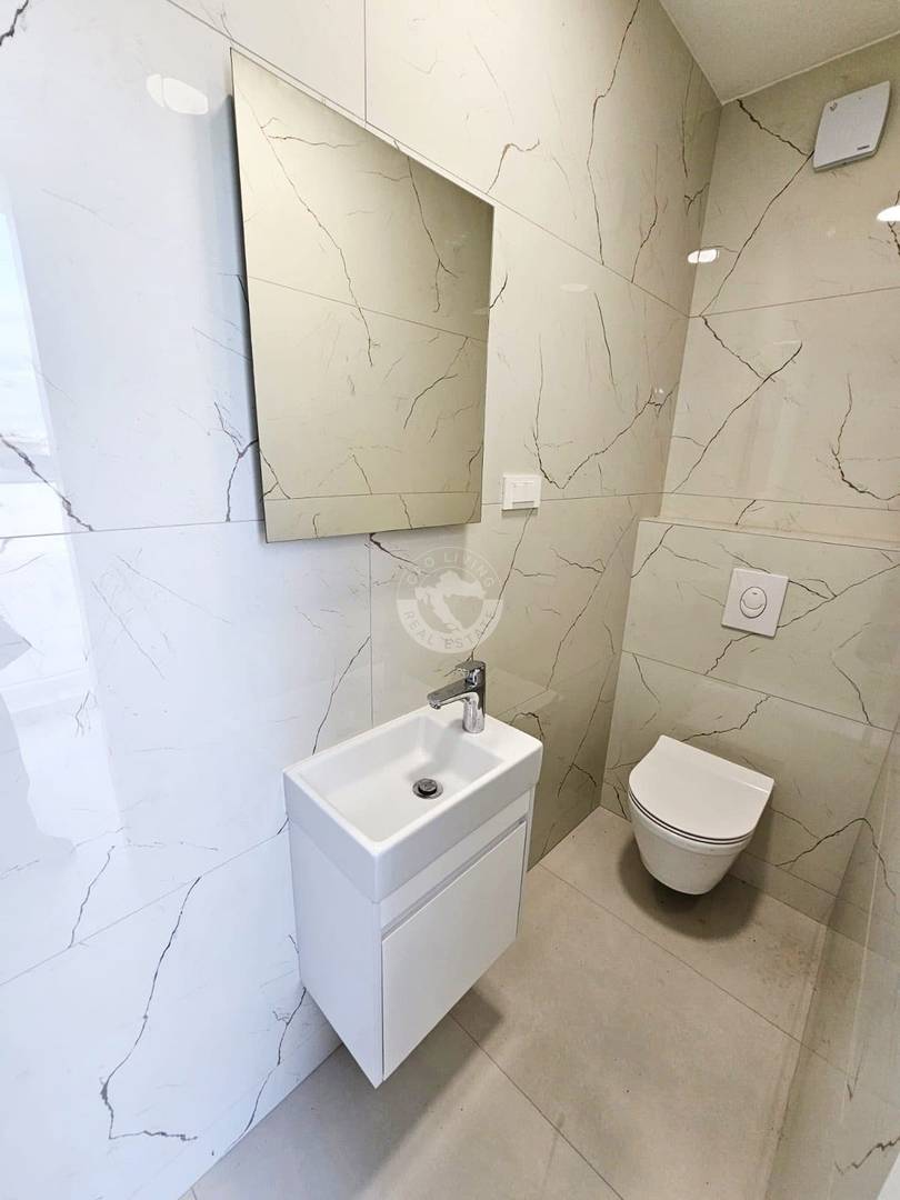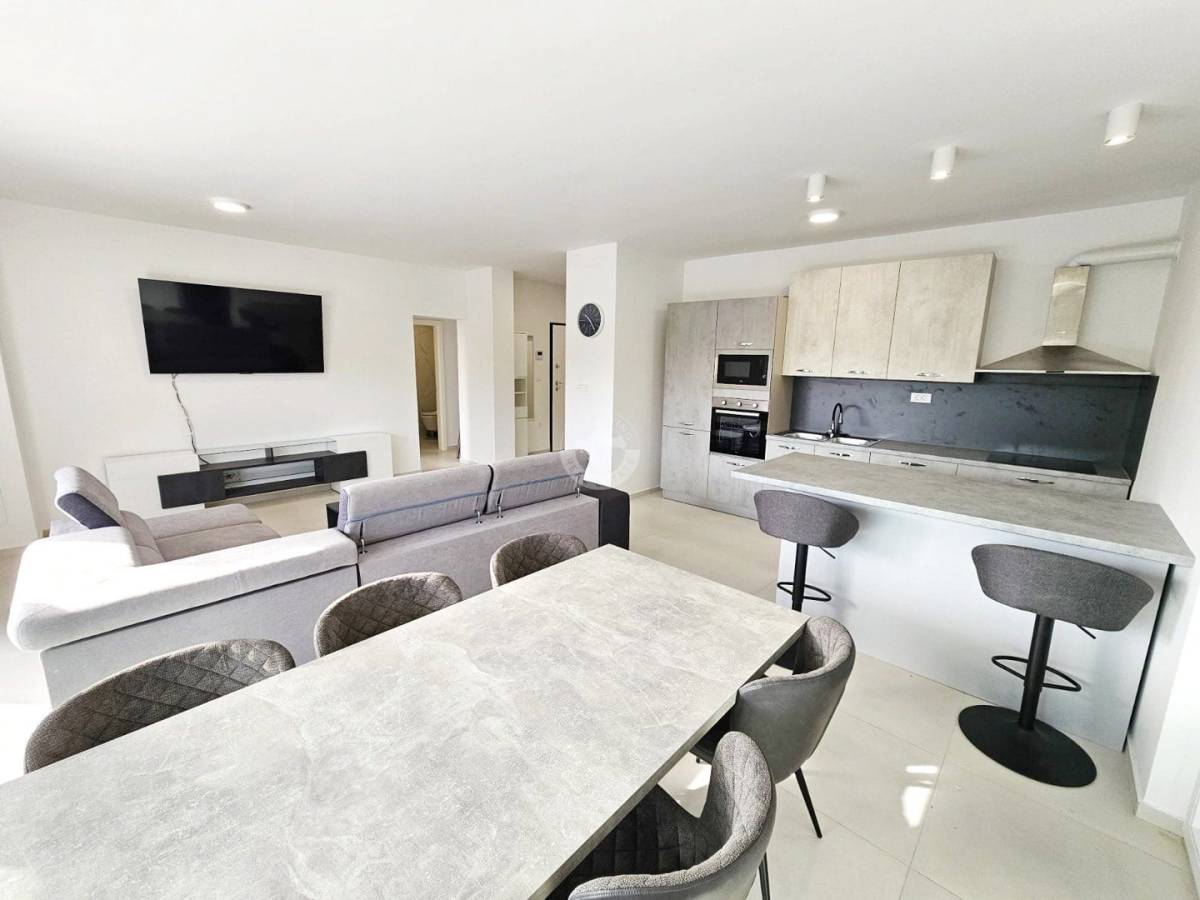 Stan se sastoji od: 3 spavaće sobe, 2 kupaonice, open space formata - kuhinja, blagavaonica i dnevni boravak s kojeg je moguć izlazak na terasu površine od 30 m2.