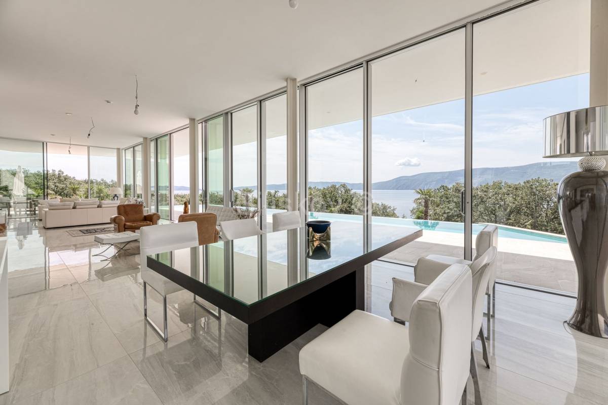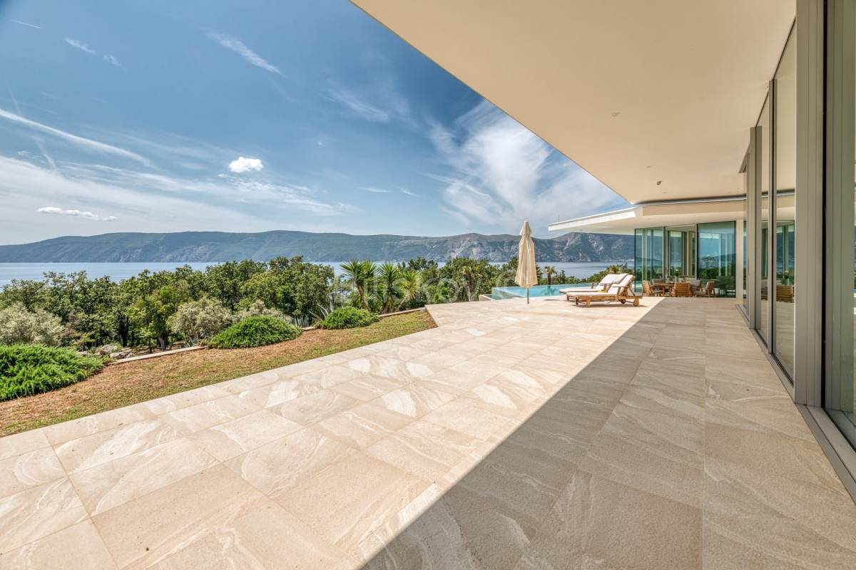 Pažljivo osmišljen vanjski prostor sadrži prostranu terasu sa grijanim infinity bazenom.