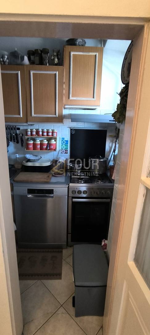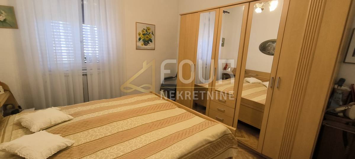 Stan površine 56,15 m2 orijentiran je na zapad, što mu osigurava obilje prirodnog svjetla, a s balkona se pruža pogled na more koji dodatno doprinosi ugodnom boravku. Prostor je funkcionalan i ugodan, namješten te useljiv, uz djelomično obnovljene instalacije vode, centralno grijanje, PVC stolariju i klima uređaj.