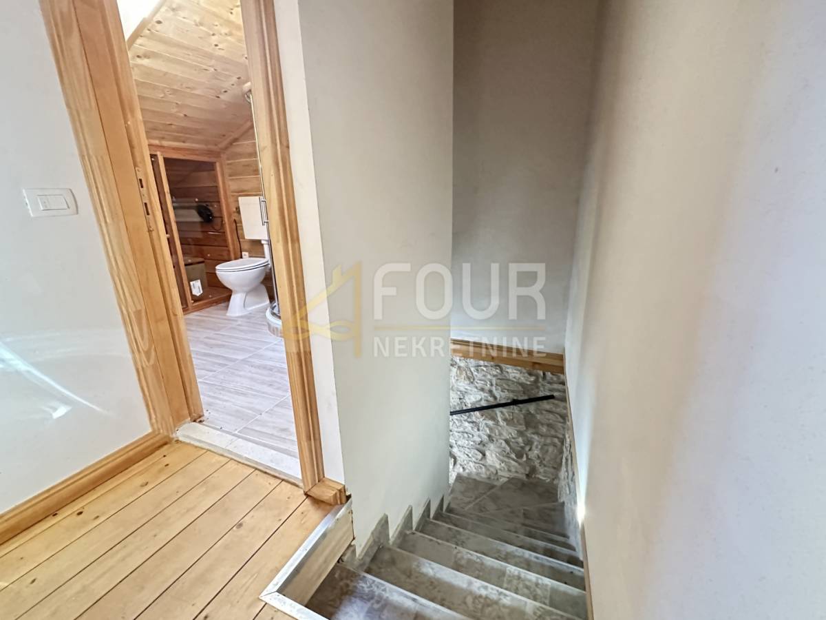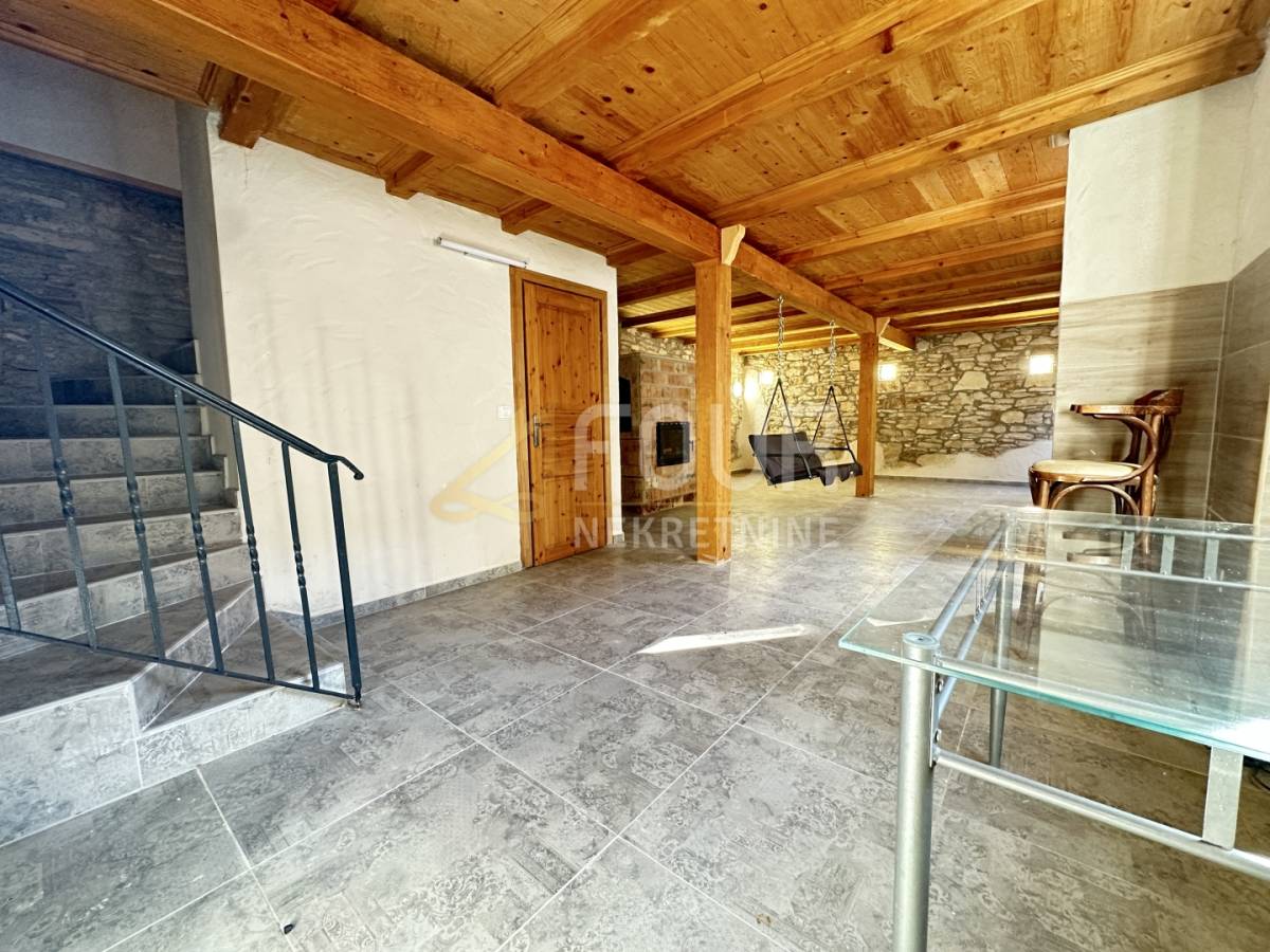 Nekretnina posjeduje dodatne prostore poput konobe, drvarnice i podruma. Opremljena je PVC stolarijom, kaminom i peći na drva.