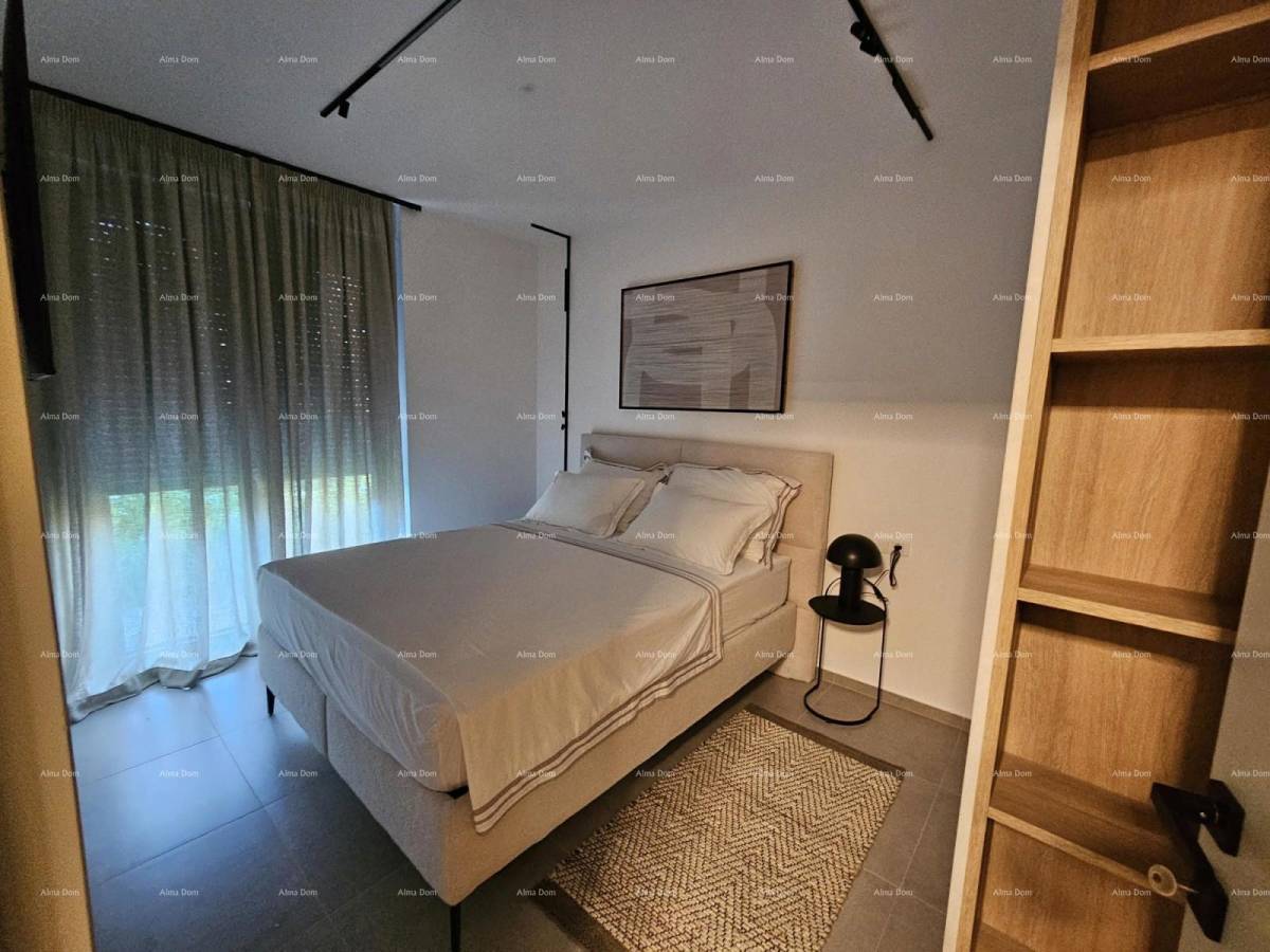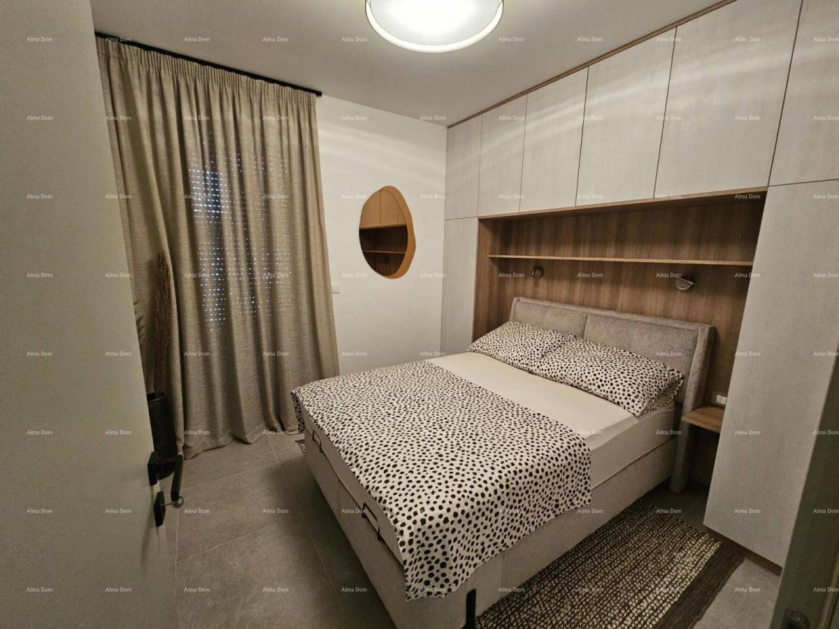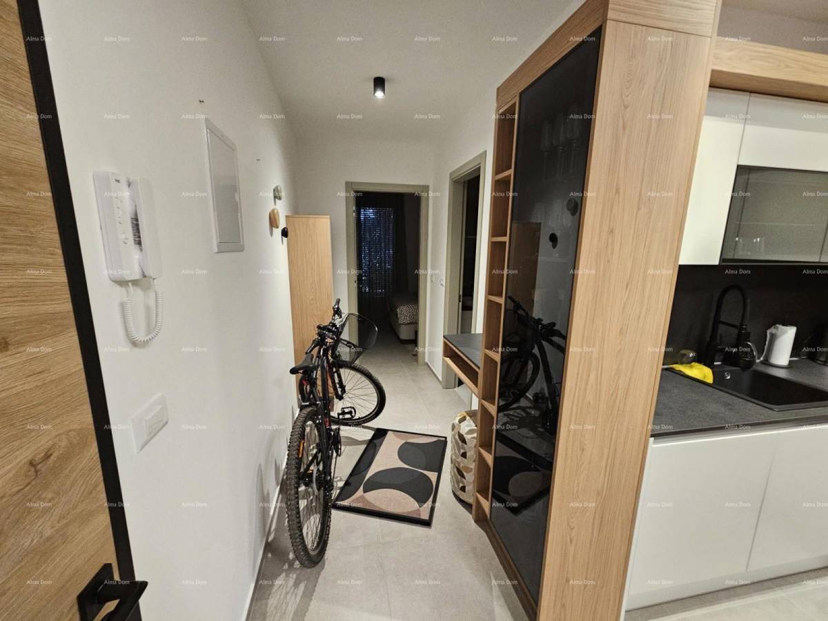 Na prodaju je potpuno novi, nikad korišten stan u prizemlju stambene zgrade, smješten u mirnom i uređenom dijelu Pule. Ovaj kvalitetno opremljen stan odlikuje se vrhunskom unutarnjom opremom, funkcionalnim rasporedom i lijepim vanjskim prostorom koji uključuje terasu, uređeni vrt, spremište i dva parkirna mjesta.