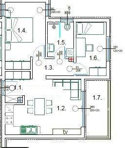 Stanu također pripada ostava u podrumu zgrade 3,50 m2 te vanjsko parkirno mjesto 12,50 m2.