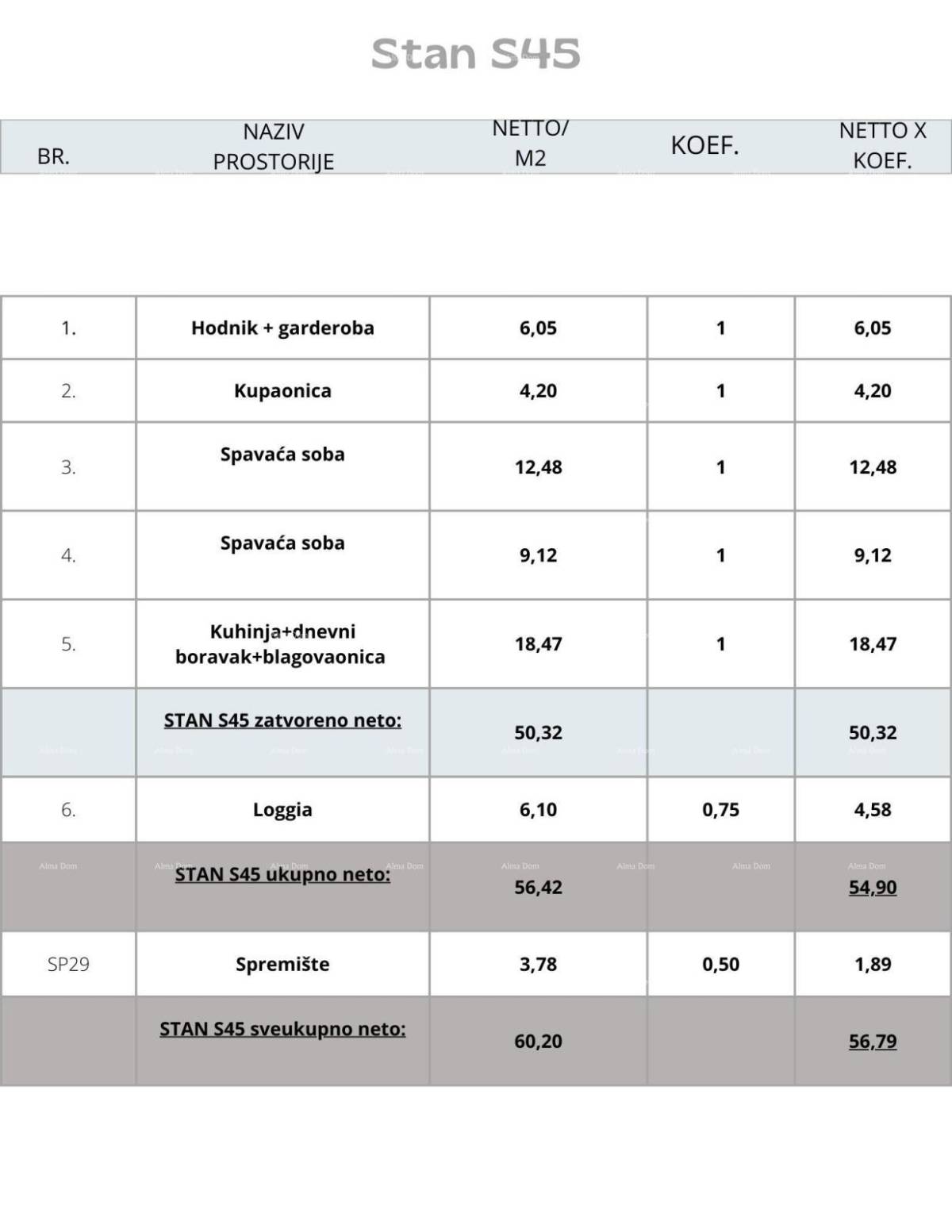 Stanu pripada parkirno mjesto i spremište od 3.78 m2 uz dodatnu nadoplatu.