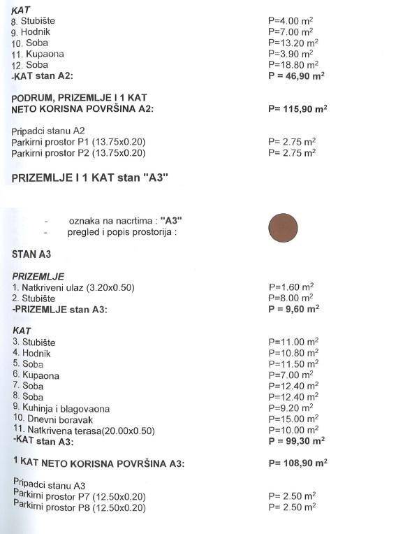 U ponudi je samostojeća kuća koja se sastoji od prizemlja i kata. U prizemlju se nalaze tri odvojena stana ( dva stana su napravljena od jednog većeg od 93 m2) te još jedan od 116 m2 koji je dvoetažni.