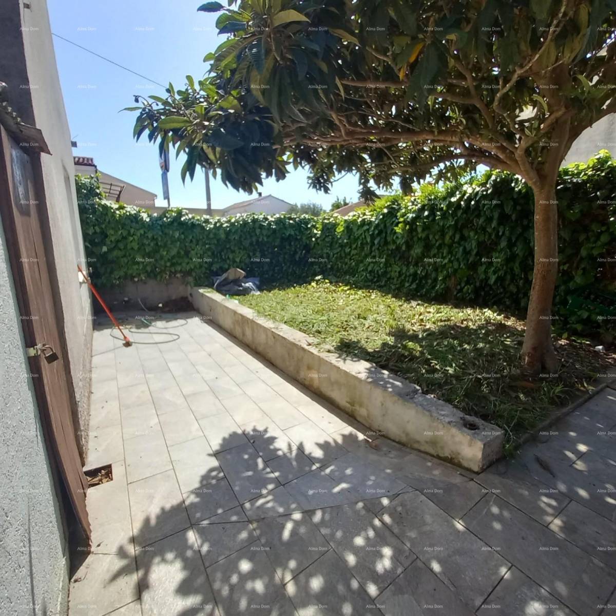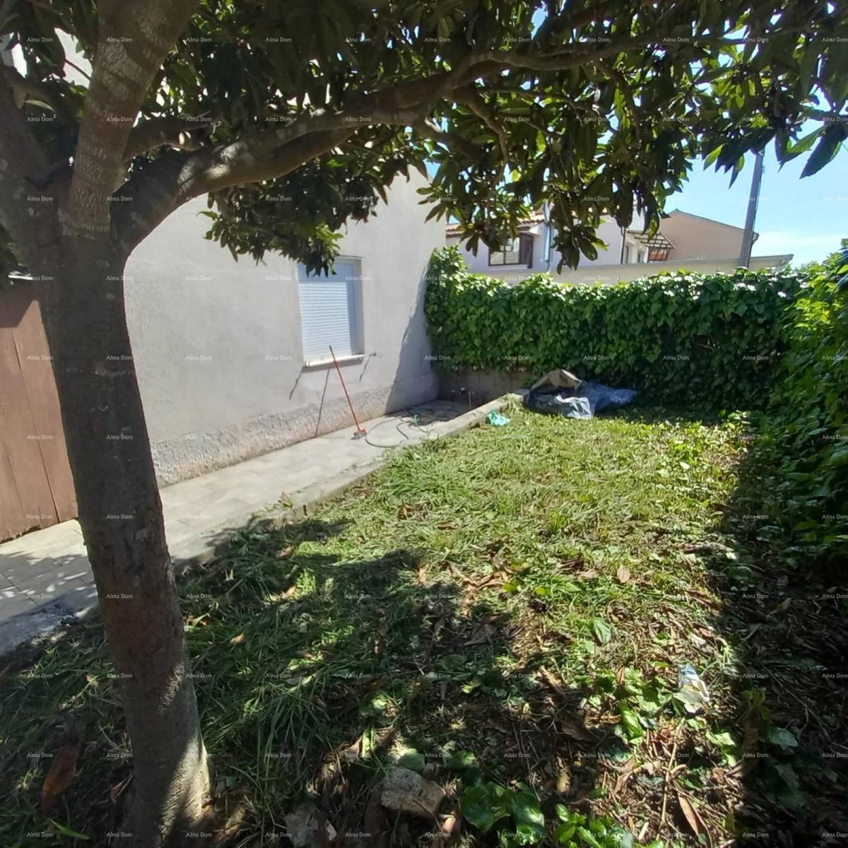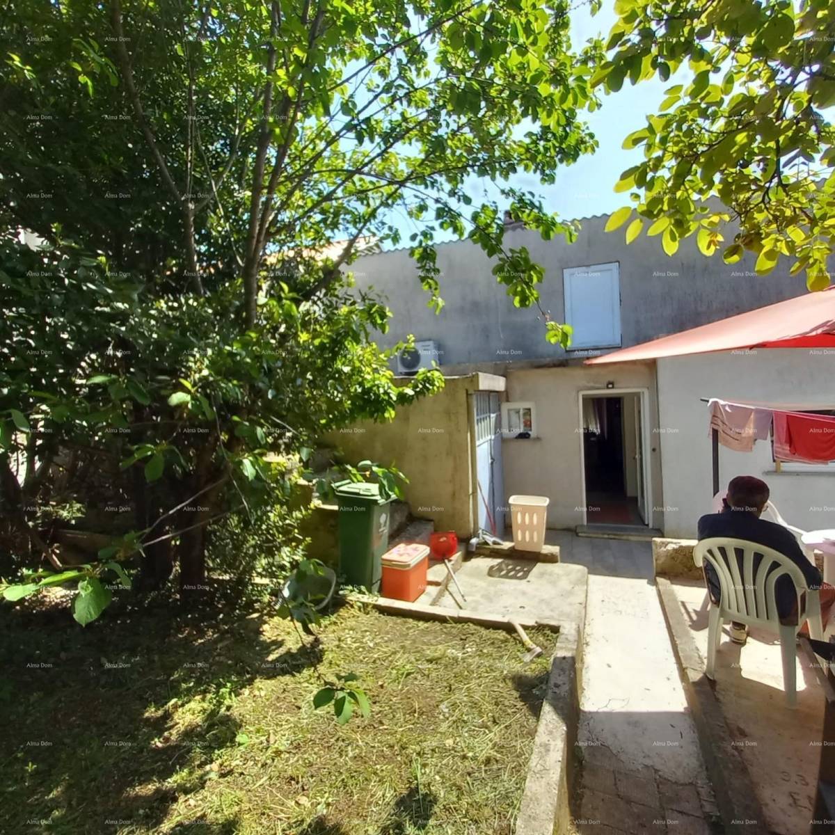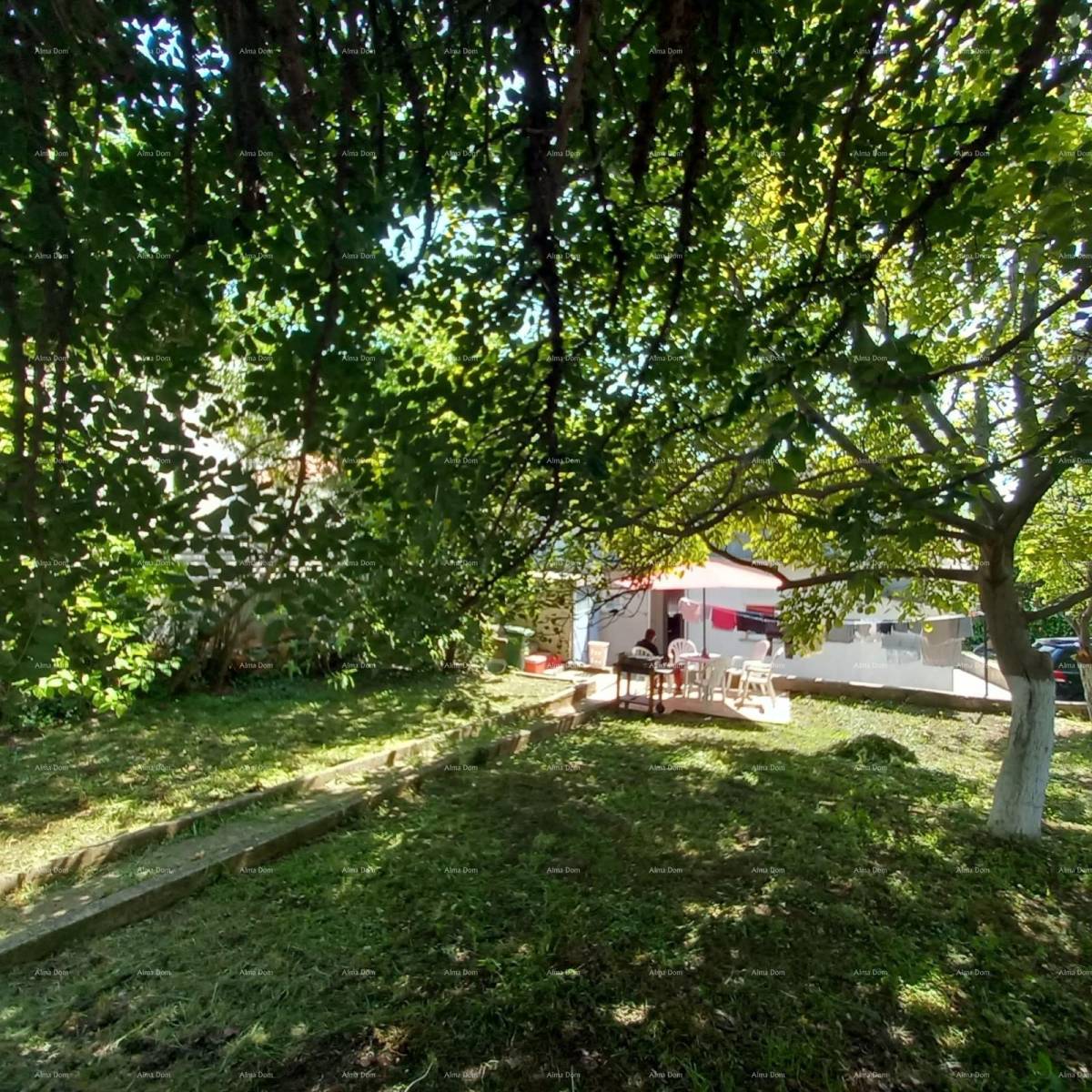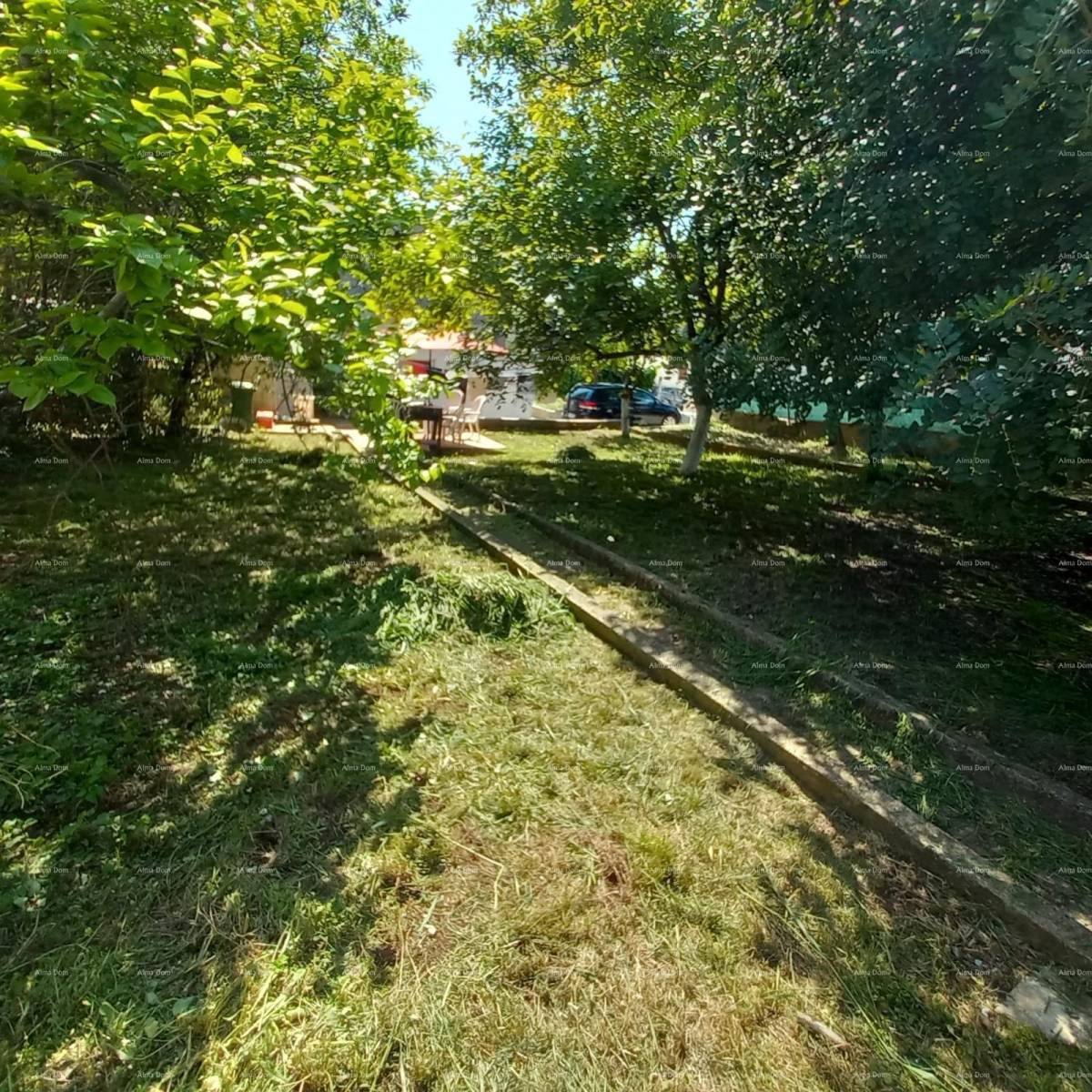 Ispred kuće prostire se prostrani vrt sa zrelim stablima, koji pruža ugodnu hladovinu tijekom vrućih ljetnih dana – idealno mjesto za odmor i uživanje u prirodi.