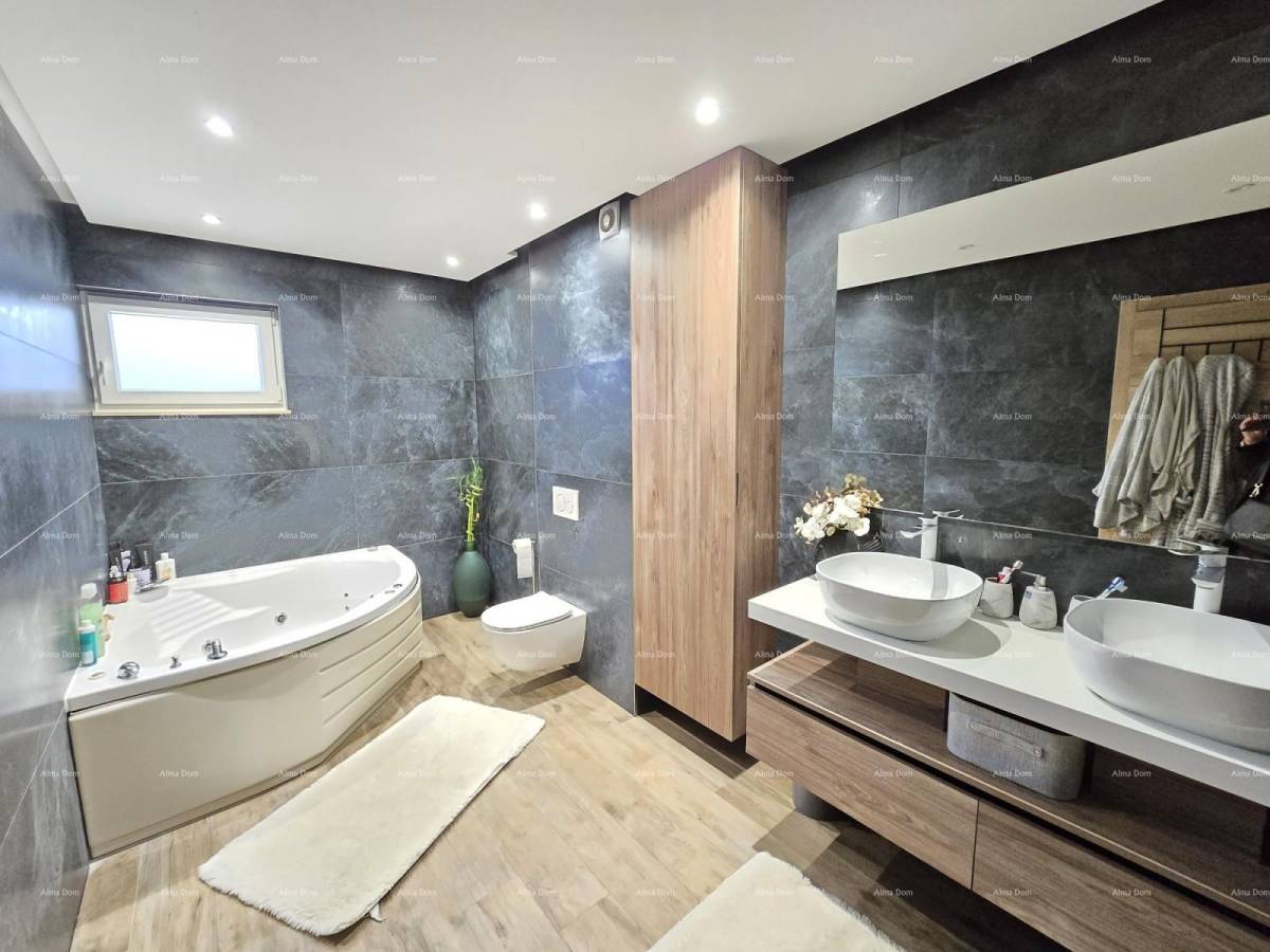Sastoji se od ulaza, ostave, prostranog dnevnog boravka s kuhinjom i blagavaonciom te s izlazom na terasu, hodnik vodi prema spavaćem dijelu gdje se nalaze tri spavaće sobe ( jedna s izlazom na terasu ) te dvije kupaonice.