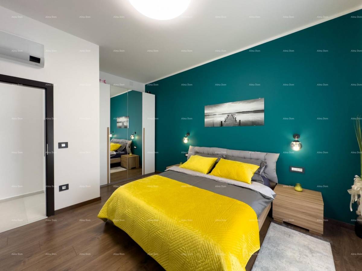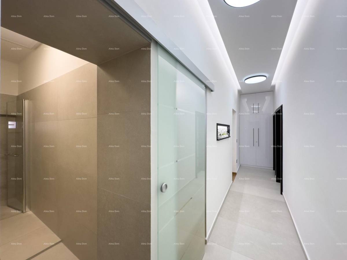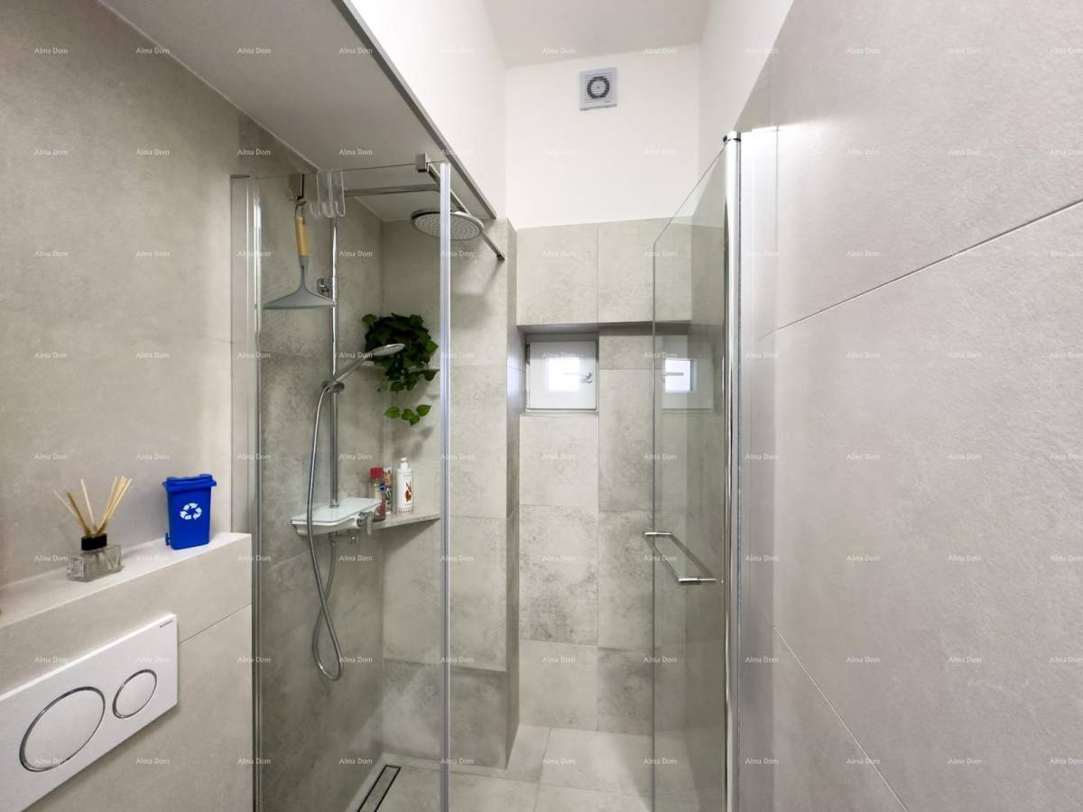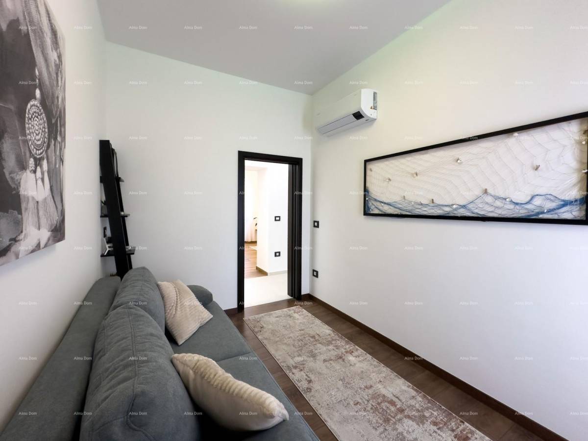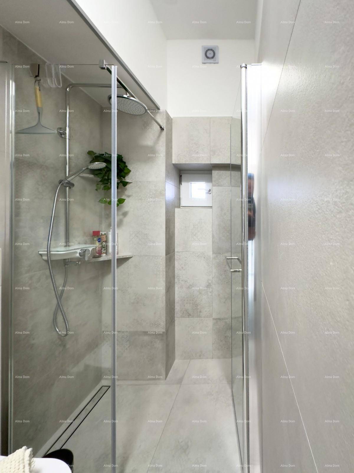 Raspored: dugački hodnik, kupatilo sa podnim grijanjem, blagovaonica, kuhinja, dnevni boravak , dvije spavaće sobe.