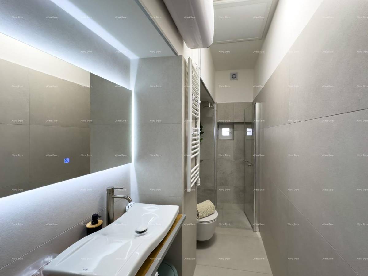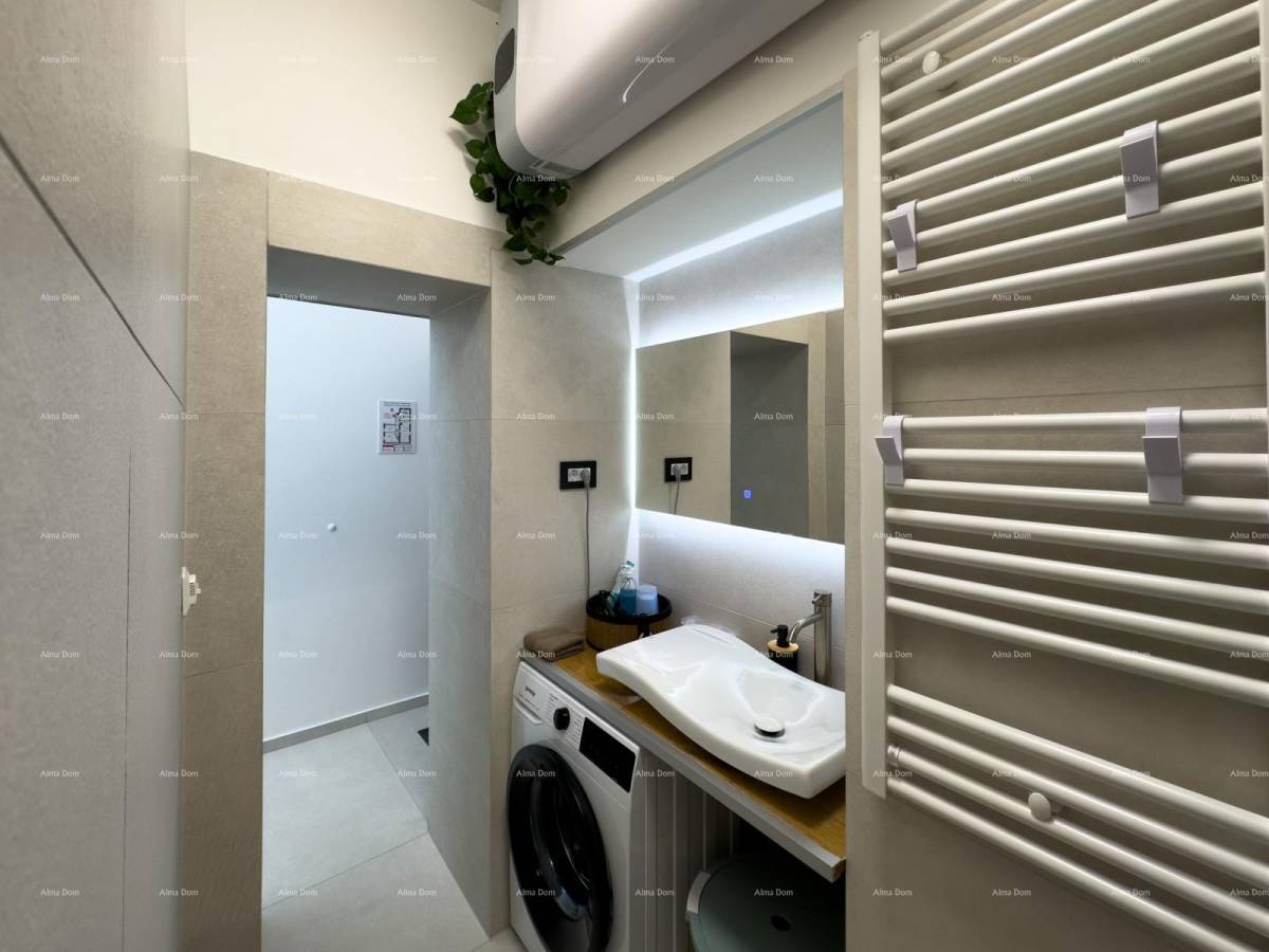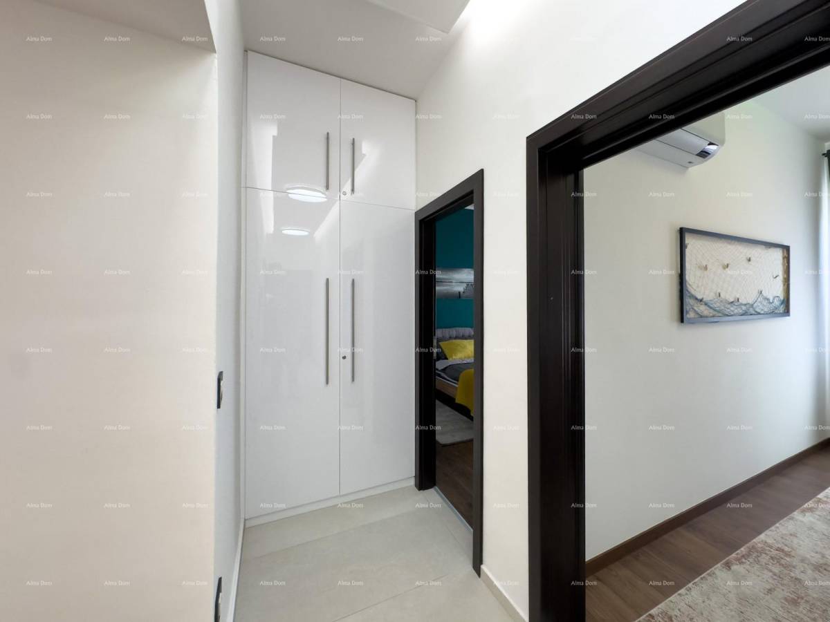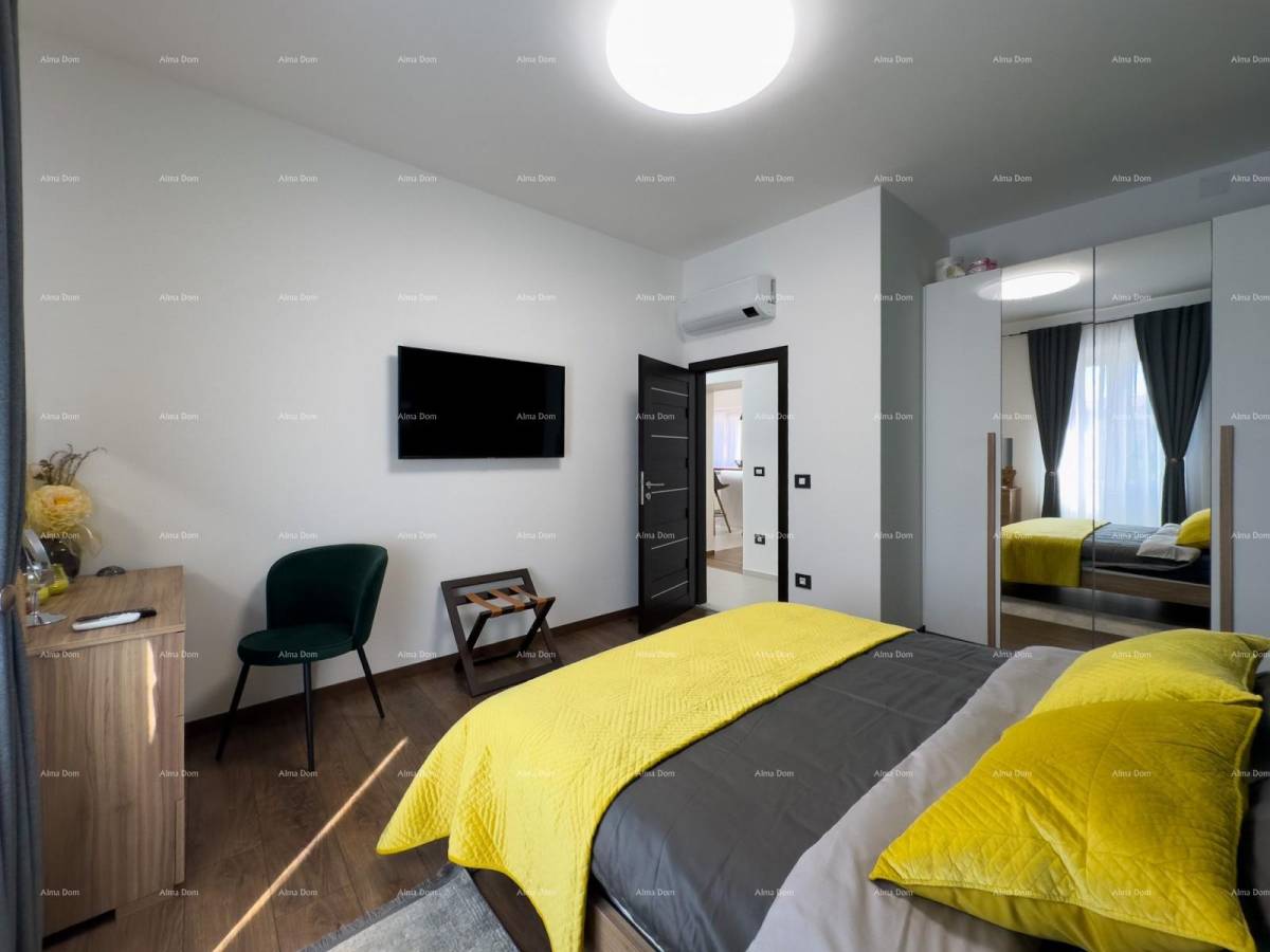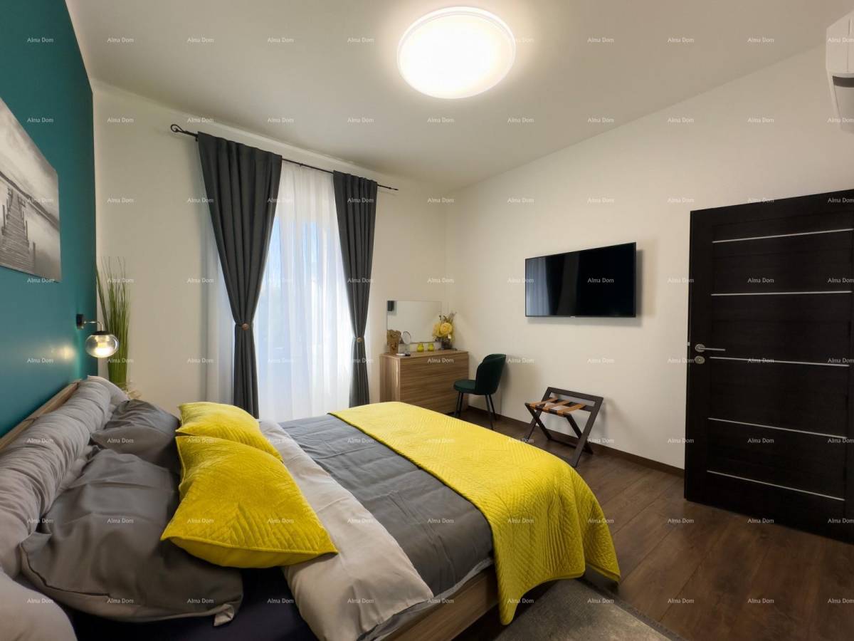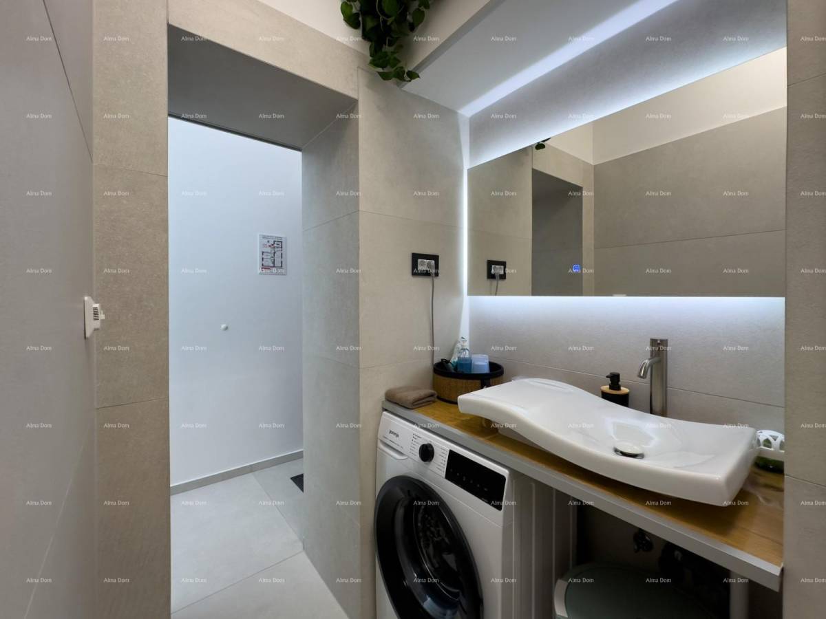 Raspored: dugački hodnik, kupatilo sa podnim grijanjem, blagovaonica, kuhinja, dnevni boravak , dvije spavaće sobe.