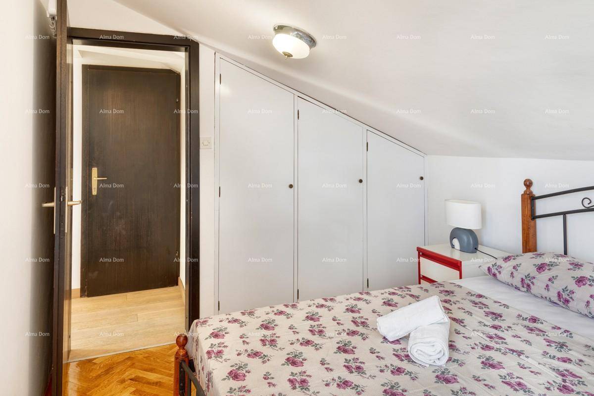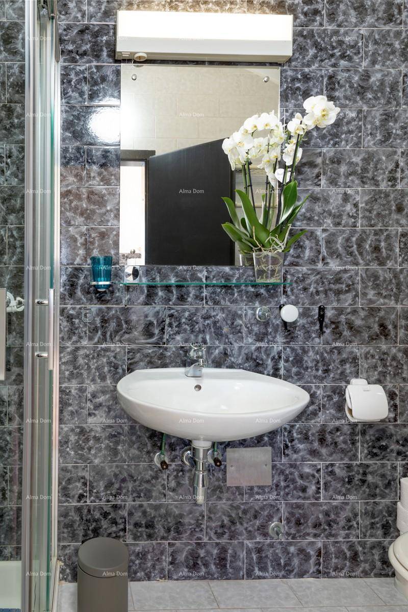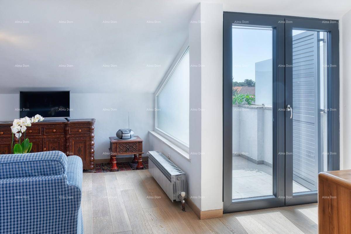 Unutarnje stepenice vode na prvi kat gdje se nalazi apartman sa dvije spavaće sobe, kupatilom, kuhinjom, blagovaonicom i dnevnim boravkom iz kog se izlazi na veliku terasu.