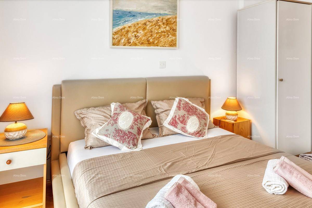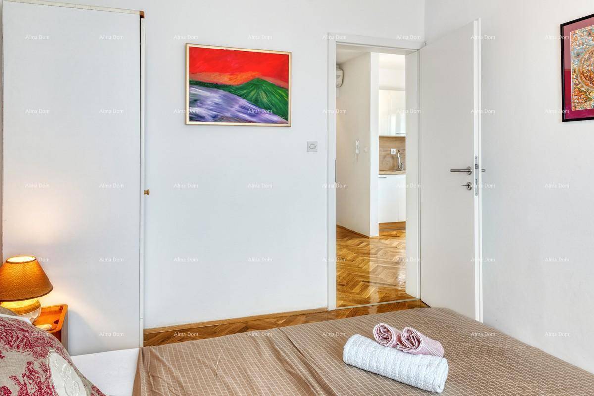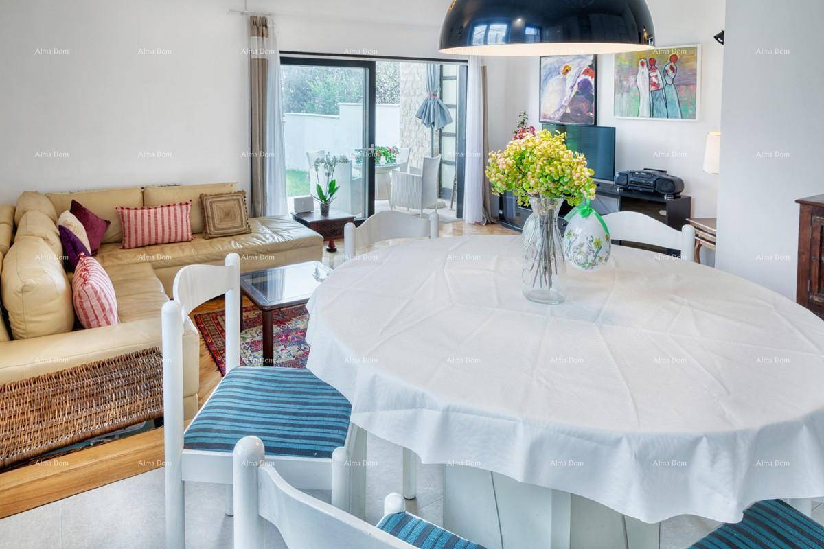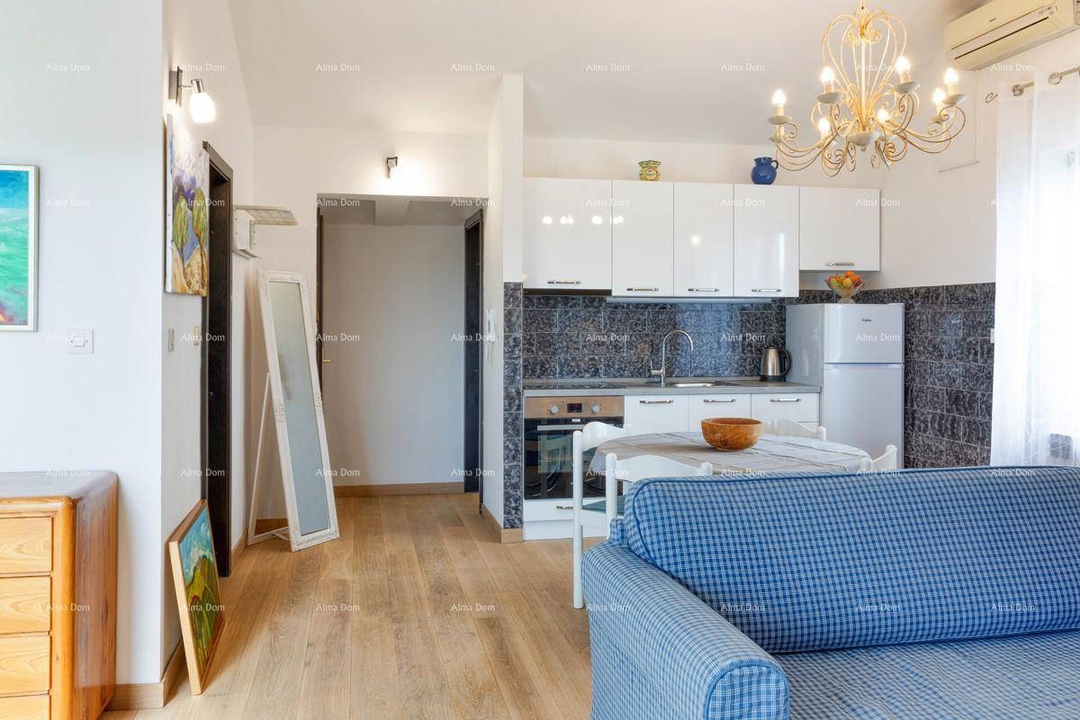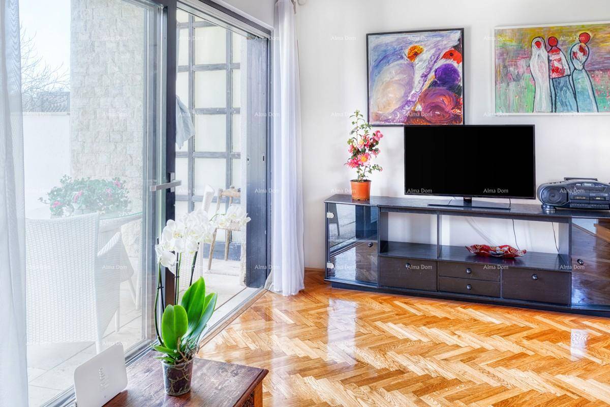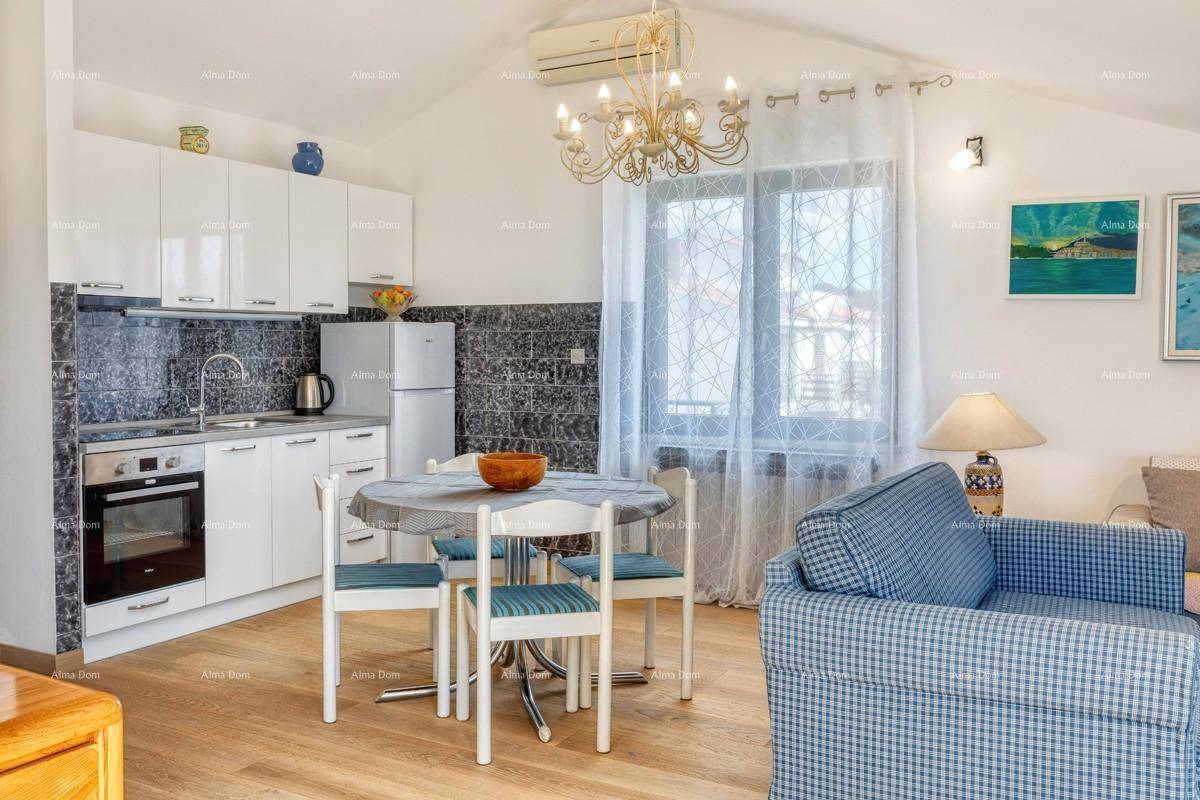 Apartman u prizemlju kuće sastoji se od jedne spavaće sobe, kupatila, kuhinje, blagovaonice i dnevnog boravka iz kog se izlazi u veliki vrt.