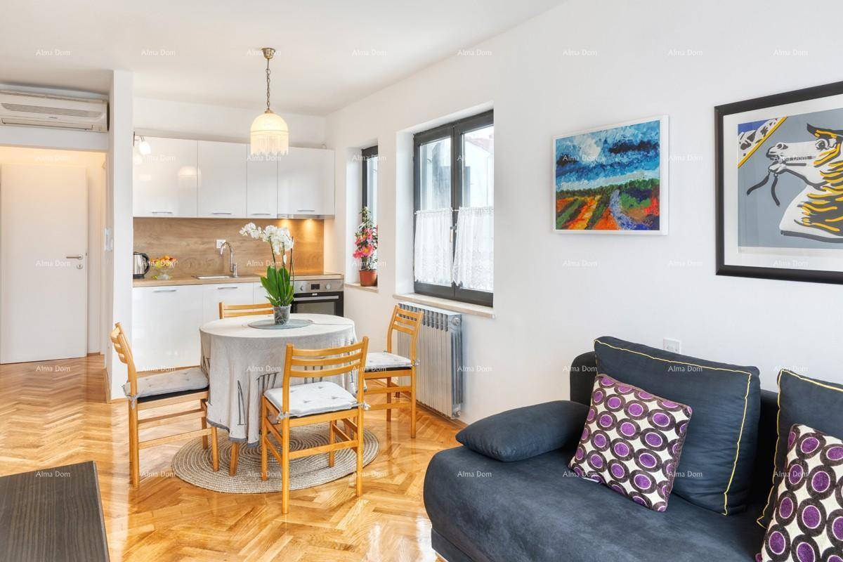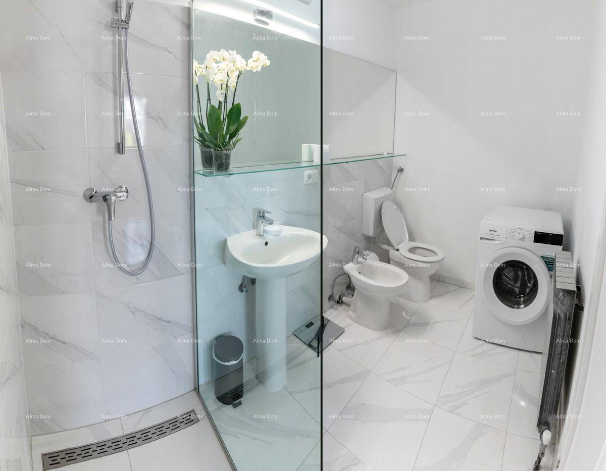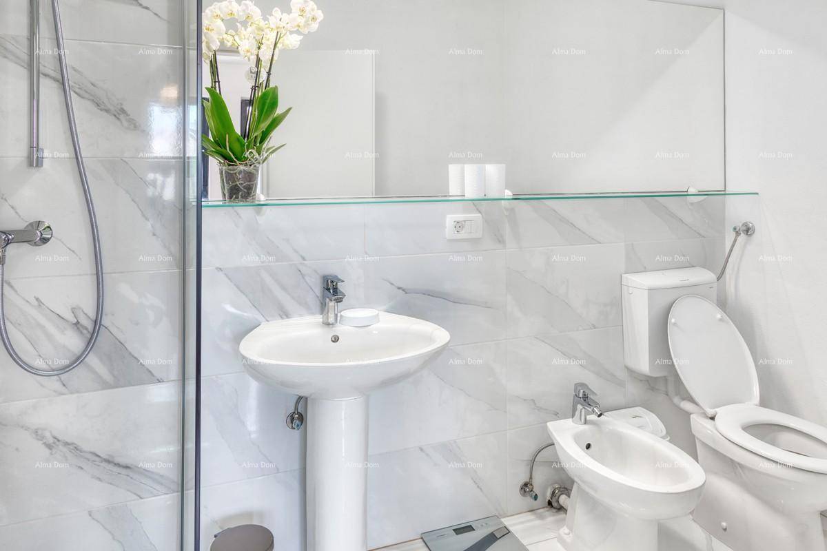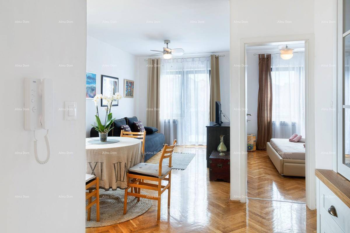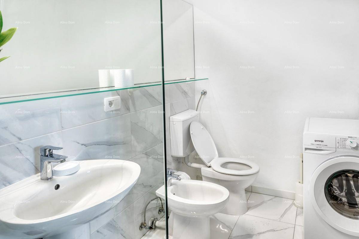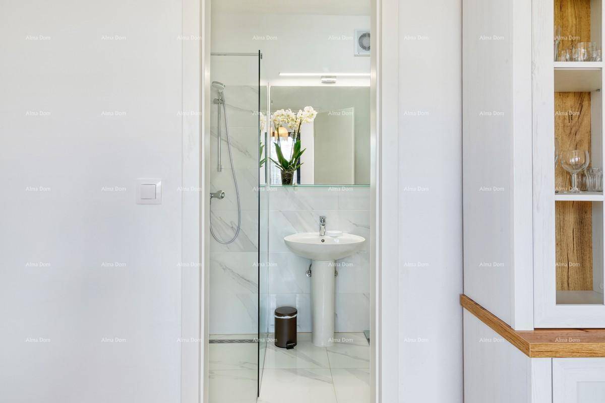 Apartman u prizemlju kuće sastoji se od jedne spavaće sobe, kupatila, kuhinje, blagovaonice i dnevnog boravka iz kog se izlazi u veliki vrt.