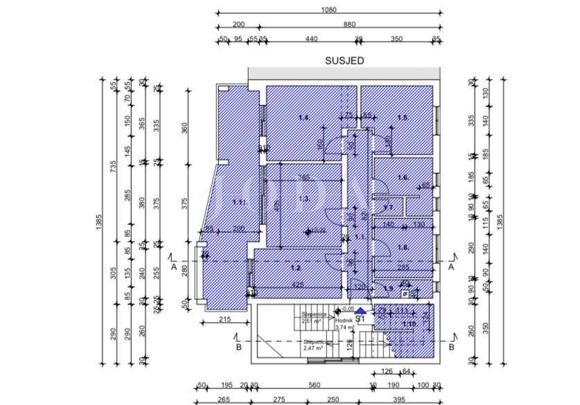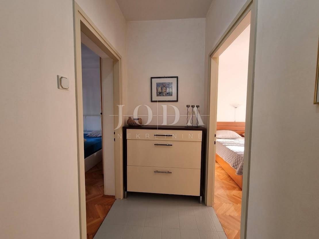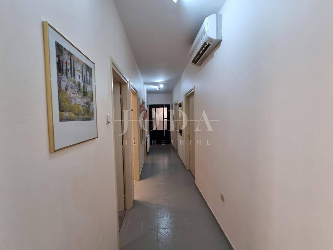Prodaje se stan površine 111,36 m2 brutto u visokom prizemlju manje stambene zgrade. Stan se sastoji od tri spavaće sobe, dnevnog boravka s kuhinjom i blagovaonom, kupaone, toaleta i prostrane terase. Stan ima dva spremišta.