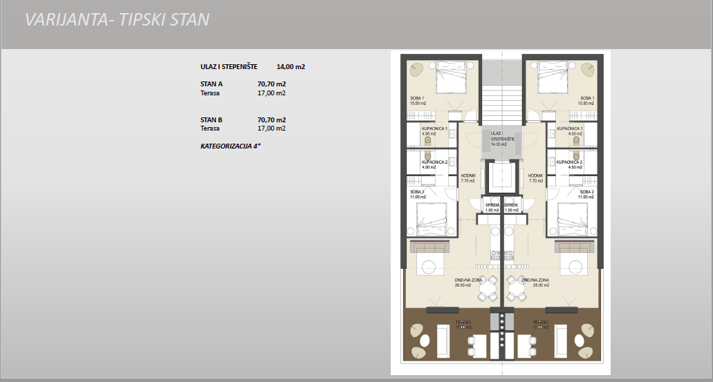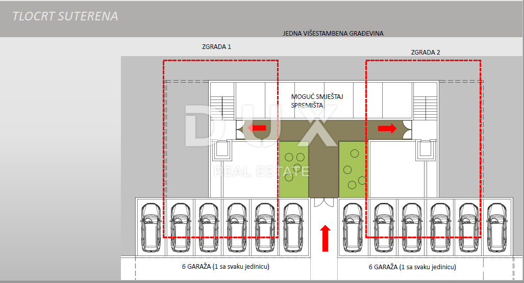 -U sklopu suterena smješten je ulaz, spremišta i garaže 1 za svaku jedinicu