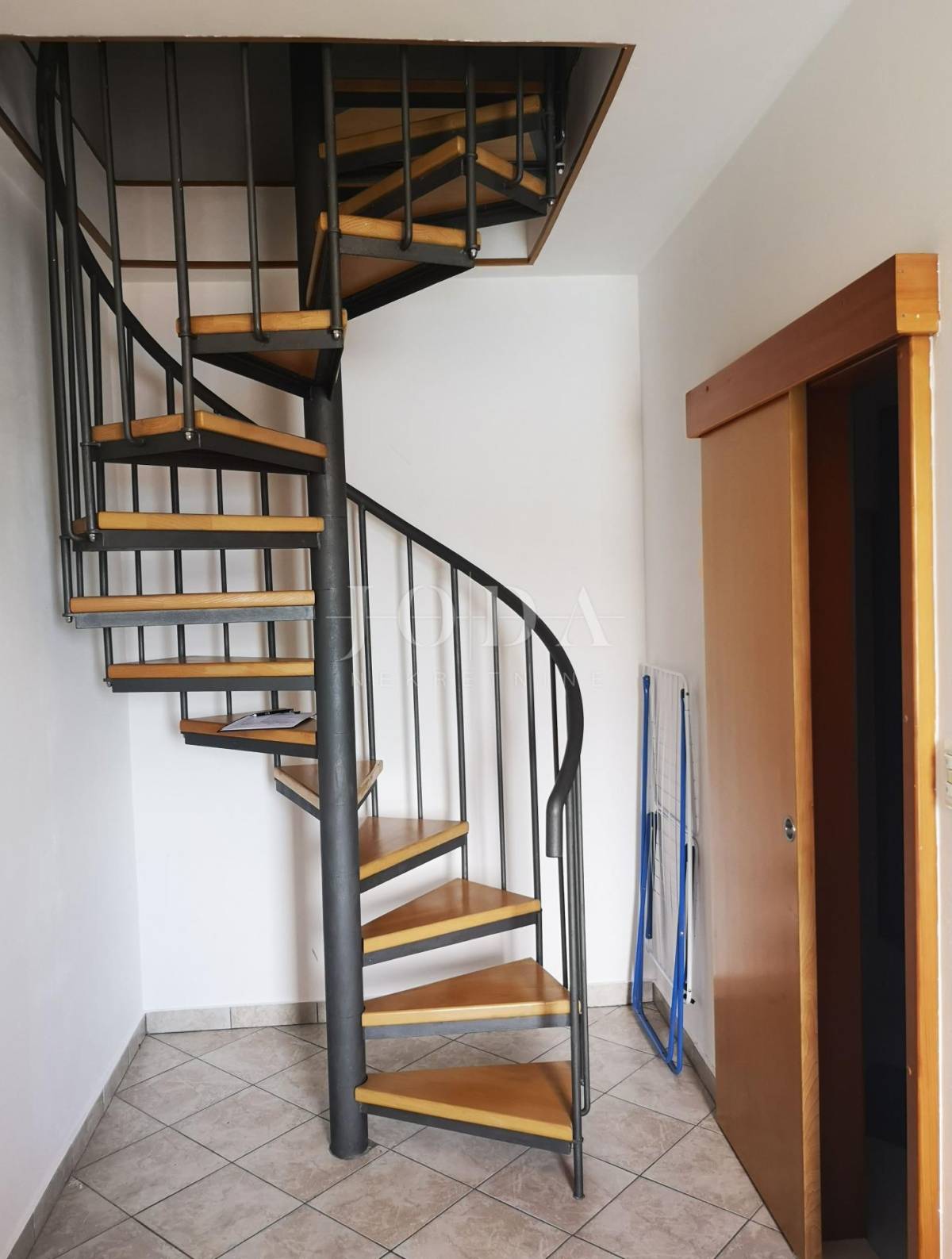 dnevni boravak,kuhinja i blagavaona te kupatilo,spiralne unutarnje stepenice vode na kat gdje se nalazi