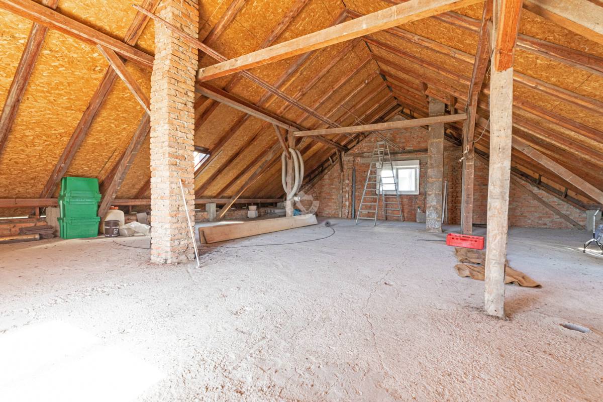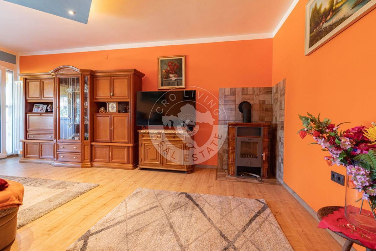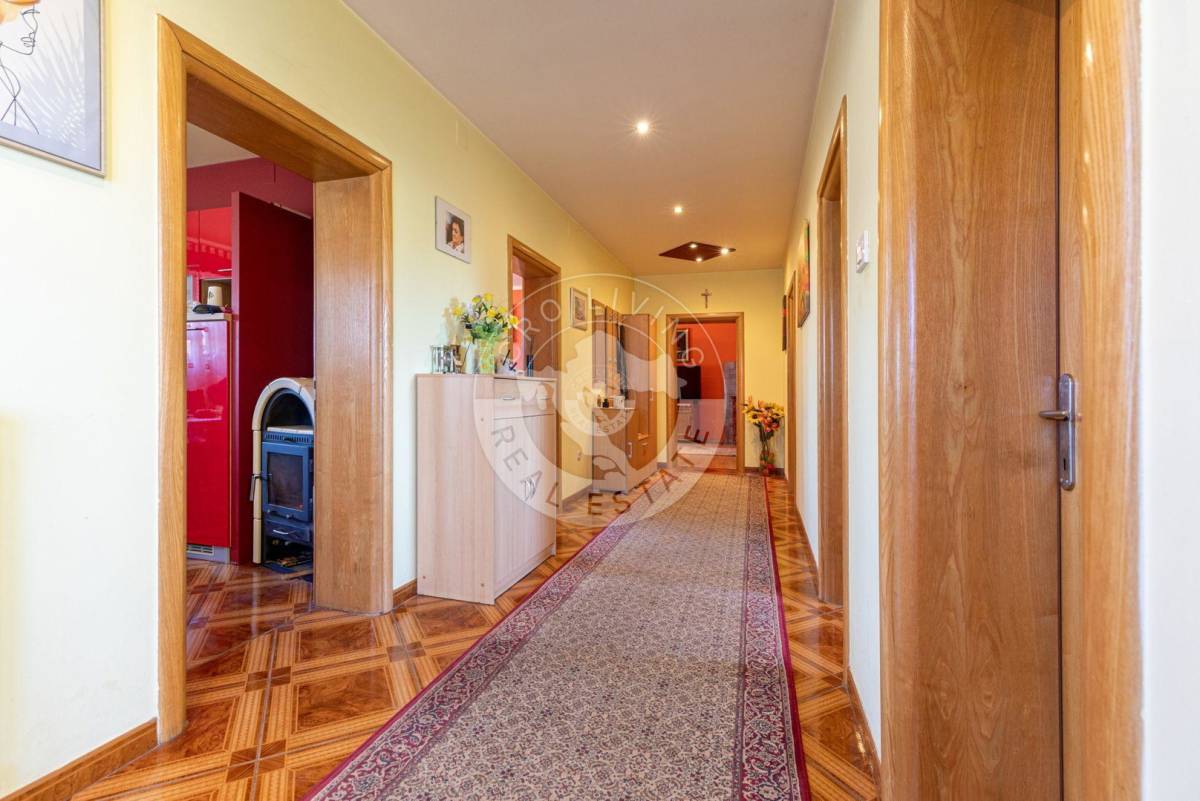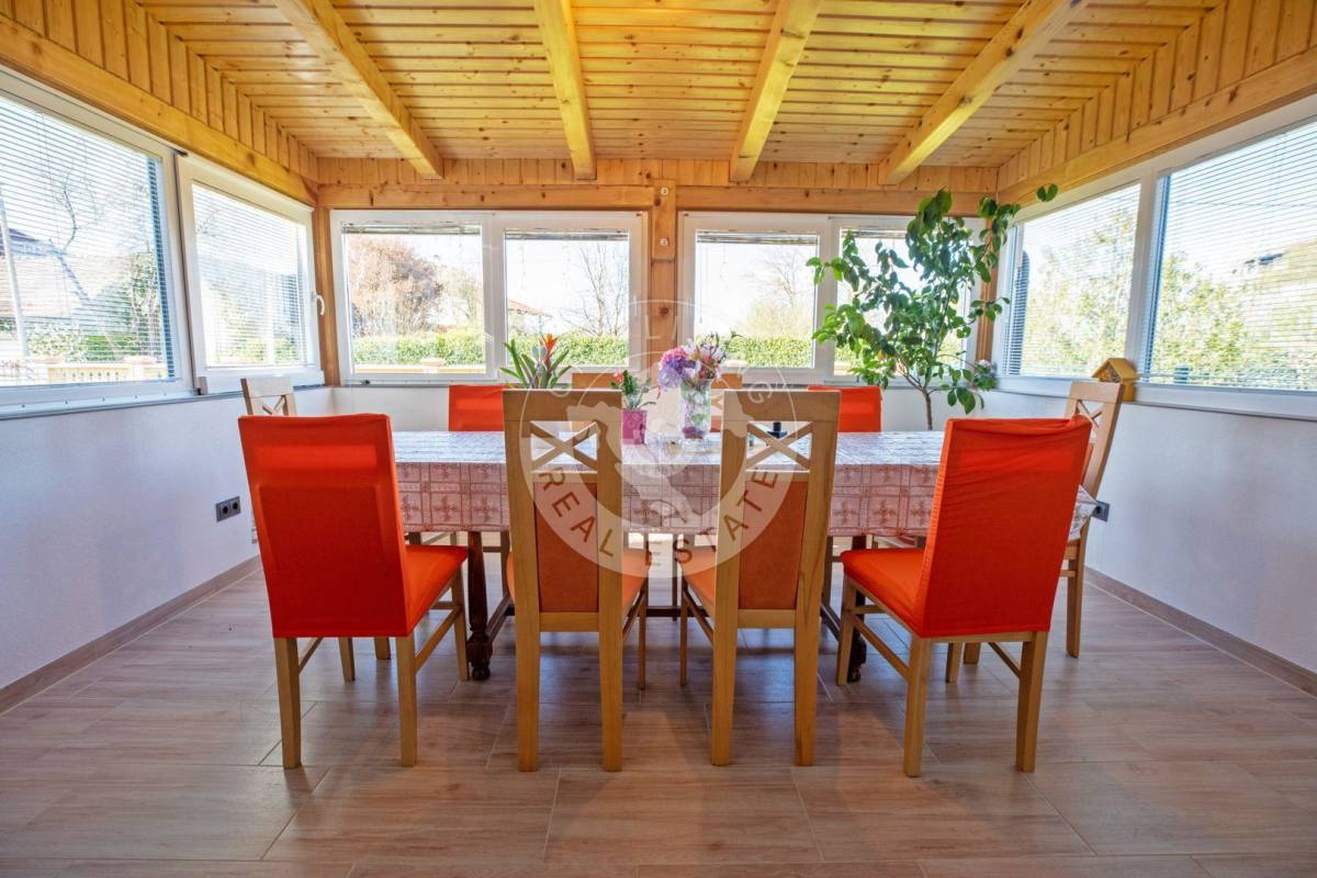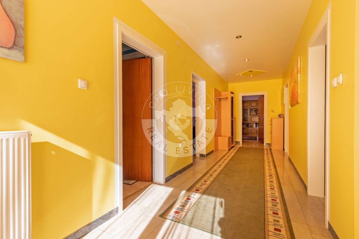Trenutna podjela u prizemlju nudi dugi prostrani, dobro iskoristiv hodnik, kuhinju sa blagovaonicom, tri prostorije, kupaonu, spremište i drvarnicu sa izlazom na stražnje dvorište, veliki dnevni boravak sa zimskim vrtom.