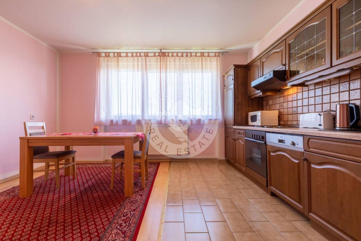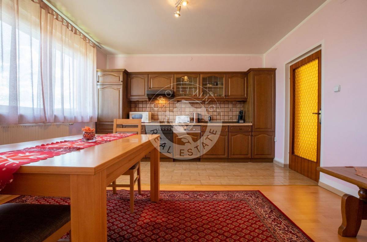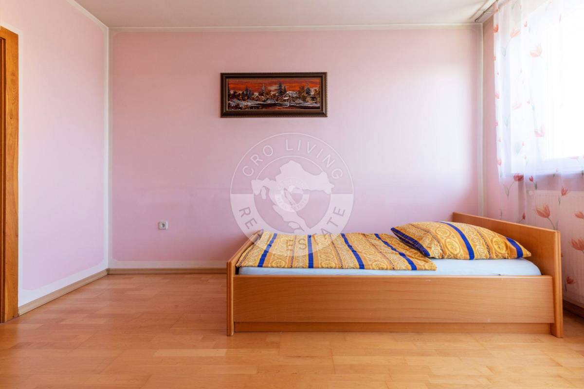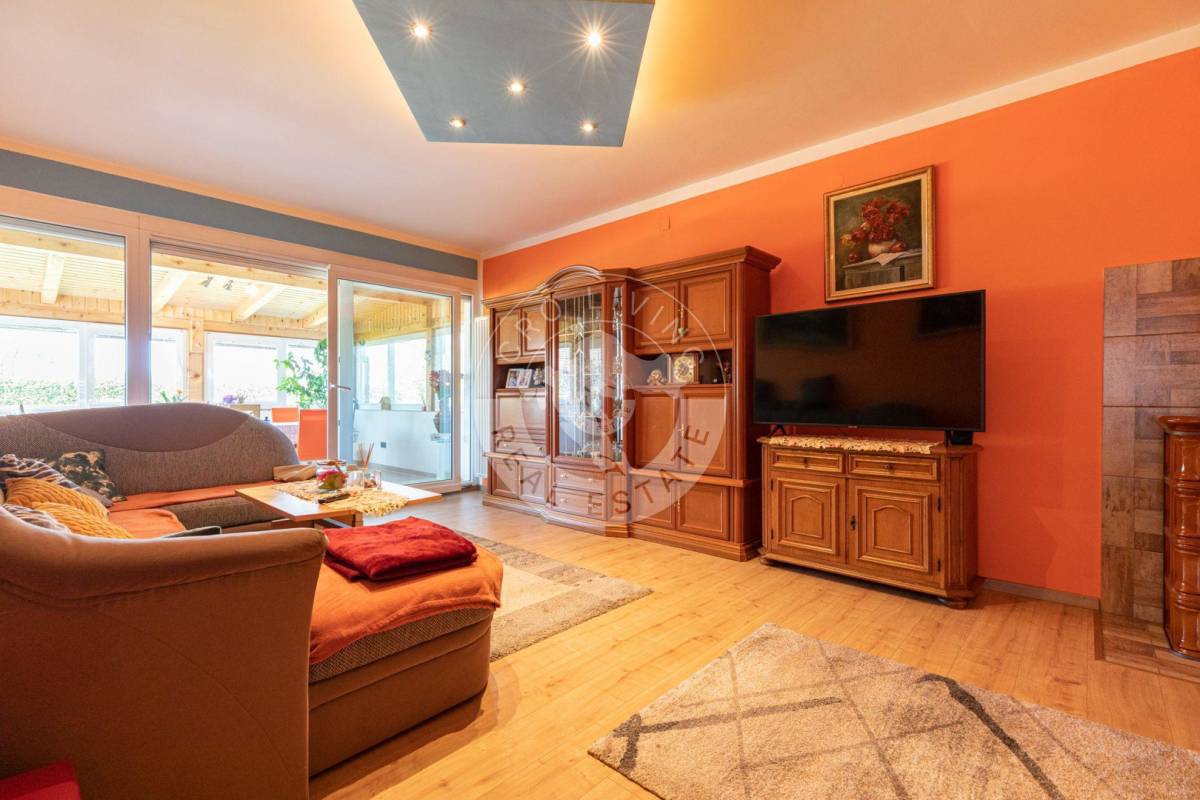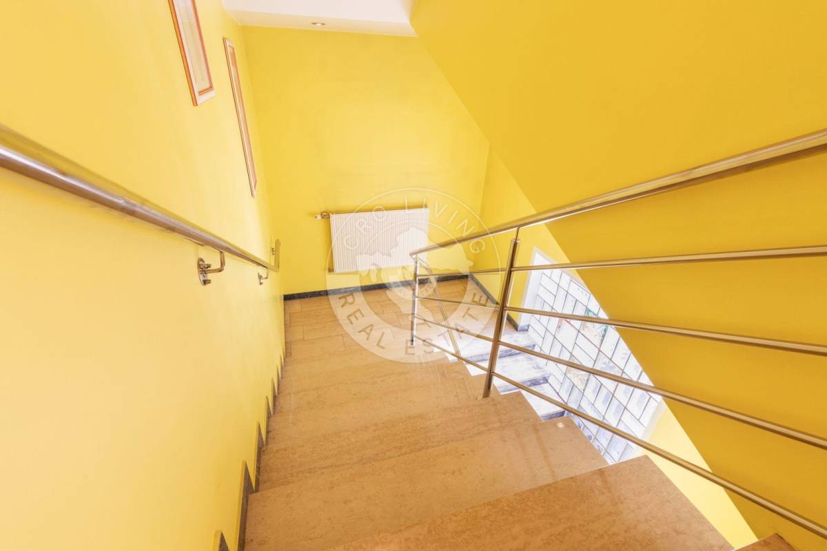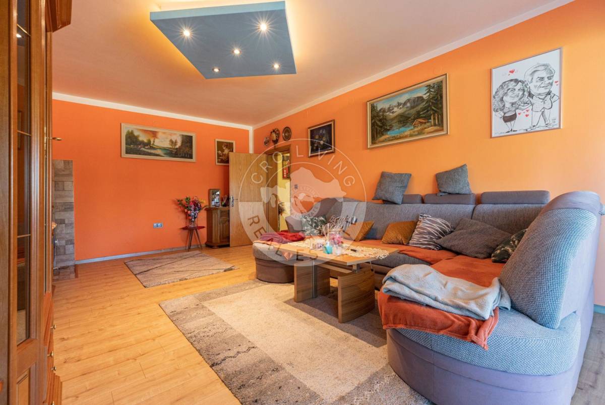 Trenutna podjela u prizemlju nudi dugi prostrani, dobro iskoristiv hodnik, kuhinju sa blagovaonicom, tri prostorije, kupaonu, spremište i drvarnicu sa izlazom na stražnje dvorište, veliki dnevni boravak sa zimskim vrtom.
