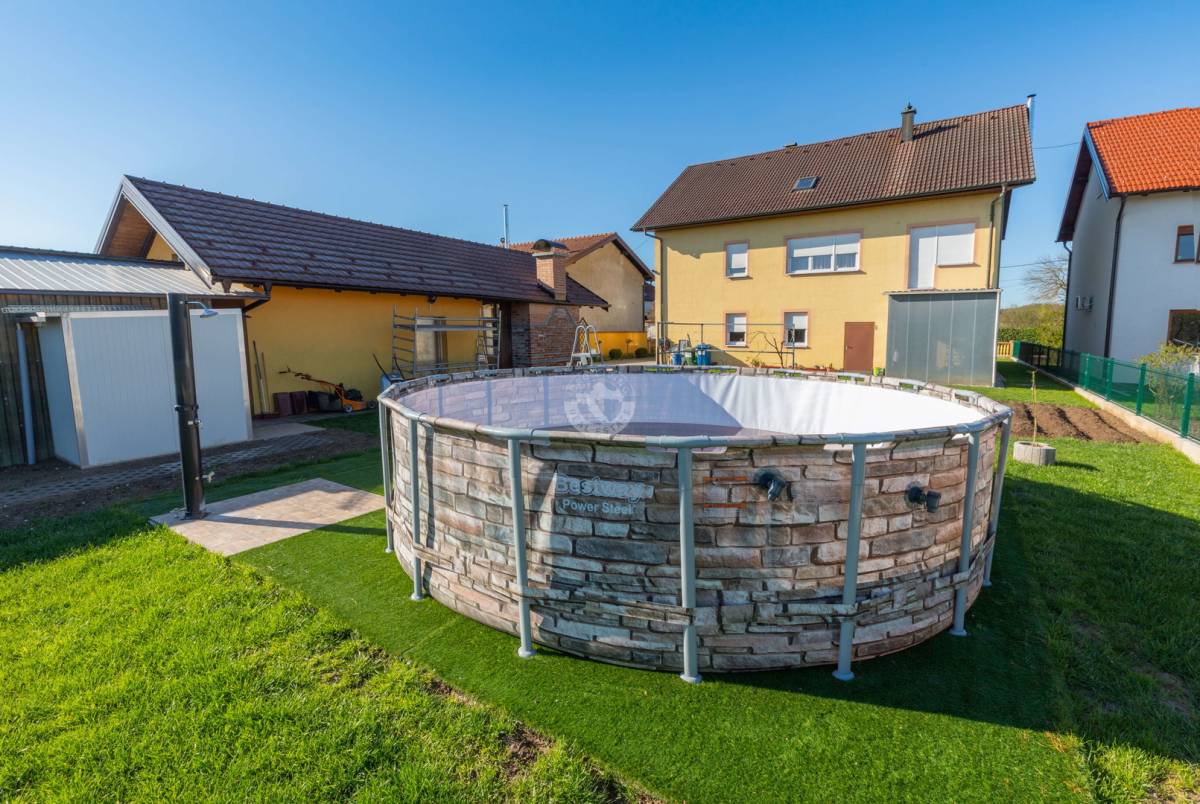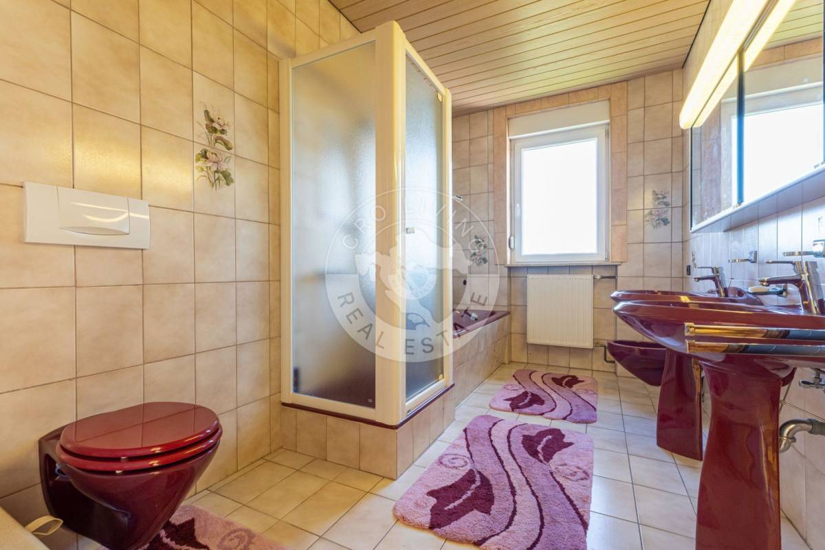 Duple izolacije zidova, tlocrtne površine 160 m2, smještena na zemljištu od 2900 m2, odlikuje se kvalitetnom gradnjom te rasporedom etaža i prostorija koji nudi različita rješenja ovisno o željama i potrebama: moguće ju je koristiti kao obiteljsku kuću ili kao tri nezavisne stambene jedinice.