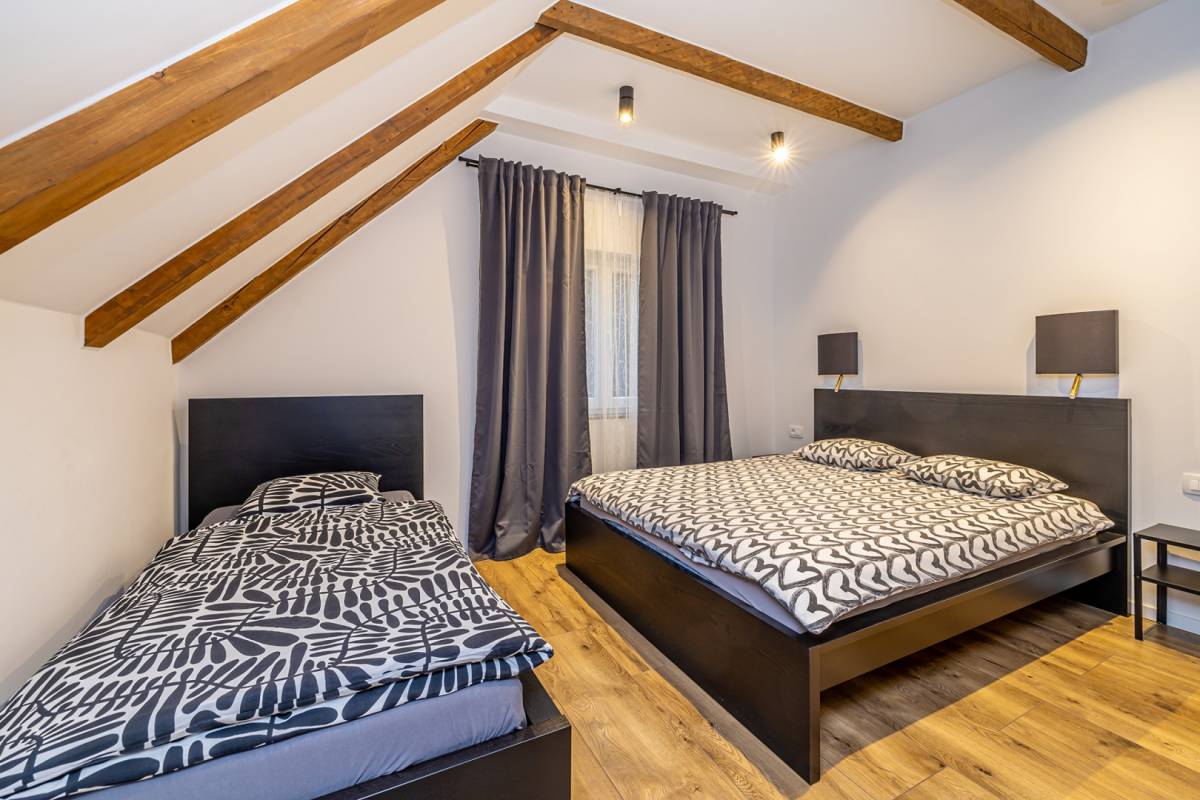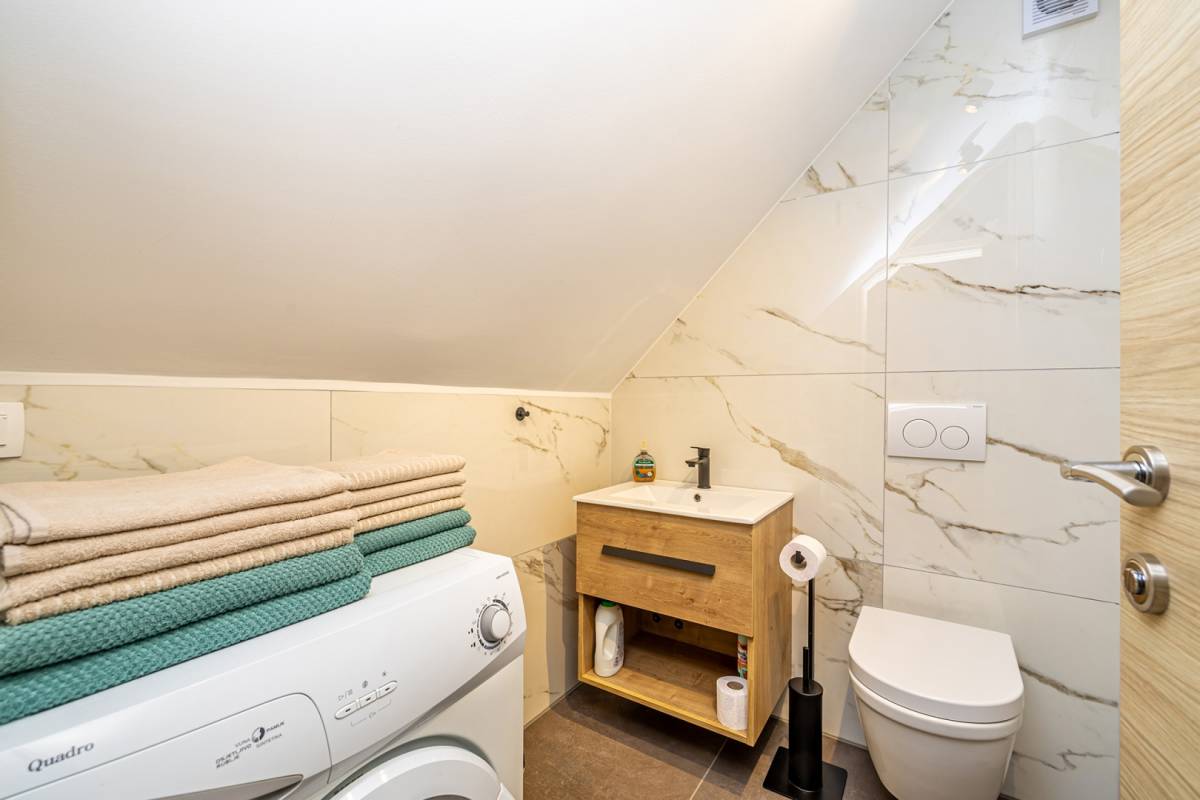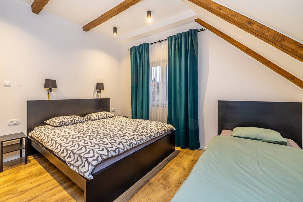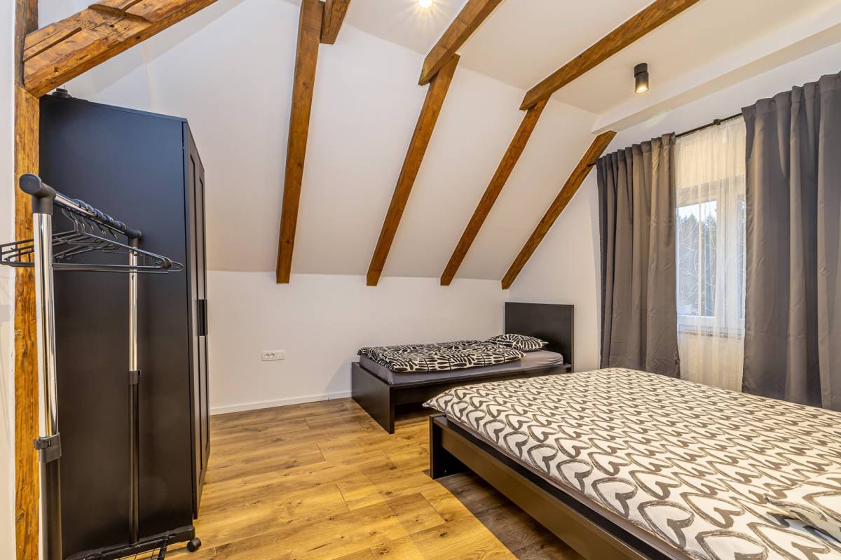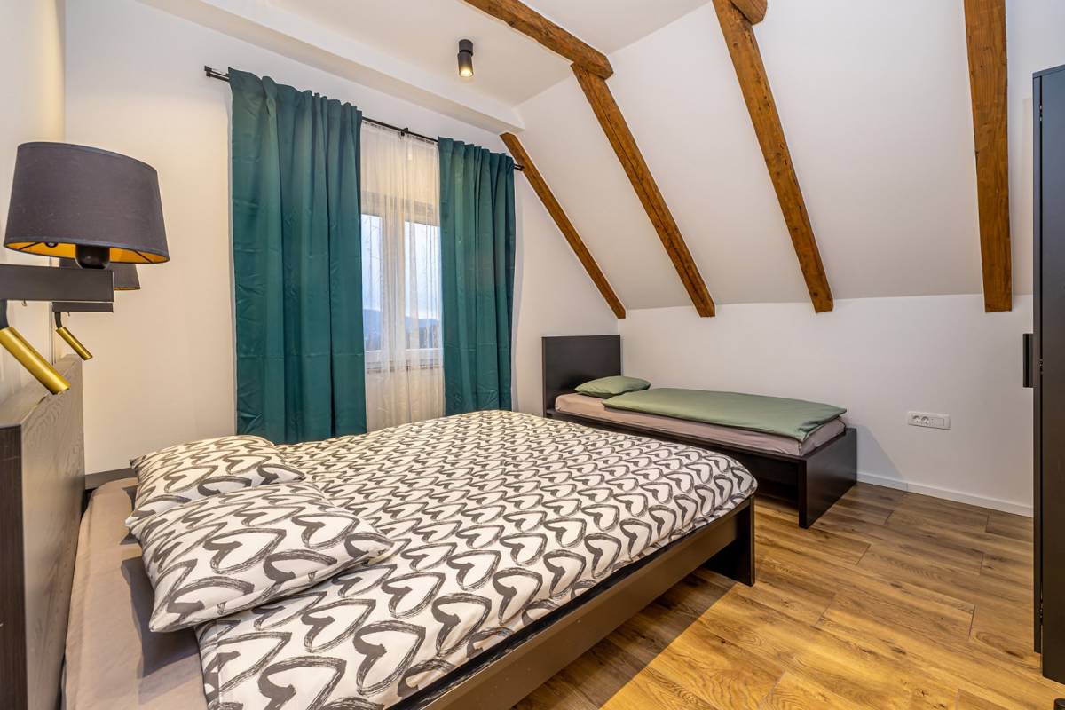 U potkrovlju nailazimo na predsoblje uređeno kao dnevni boravak, dvije spavaće sobe, kupaonicu i WC. Također, tu se smjestila i velika soba koja može poslužiti kao spavaća ili radna soba.