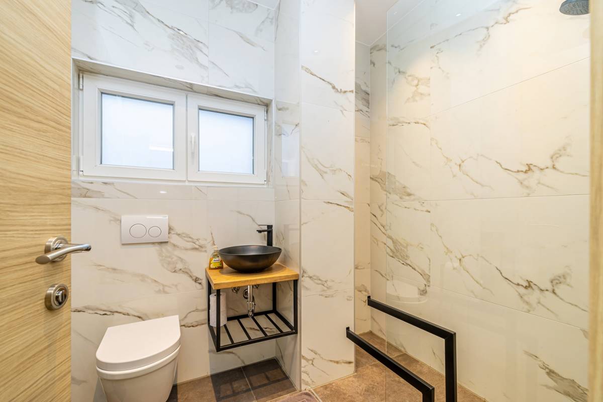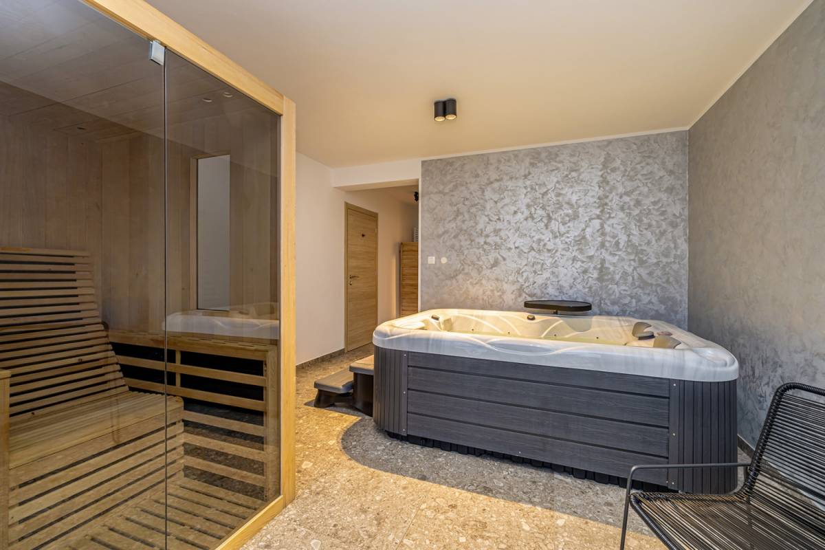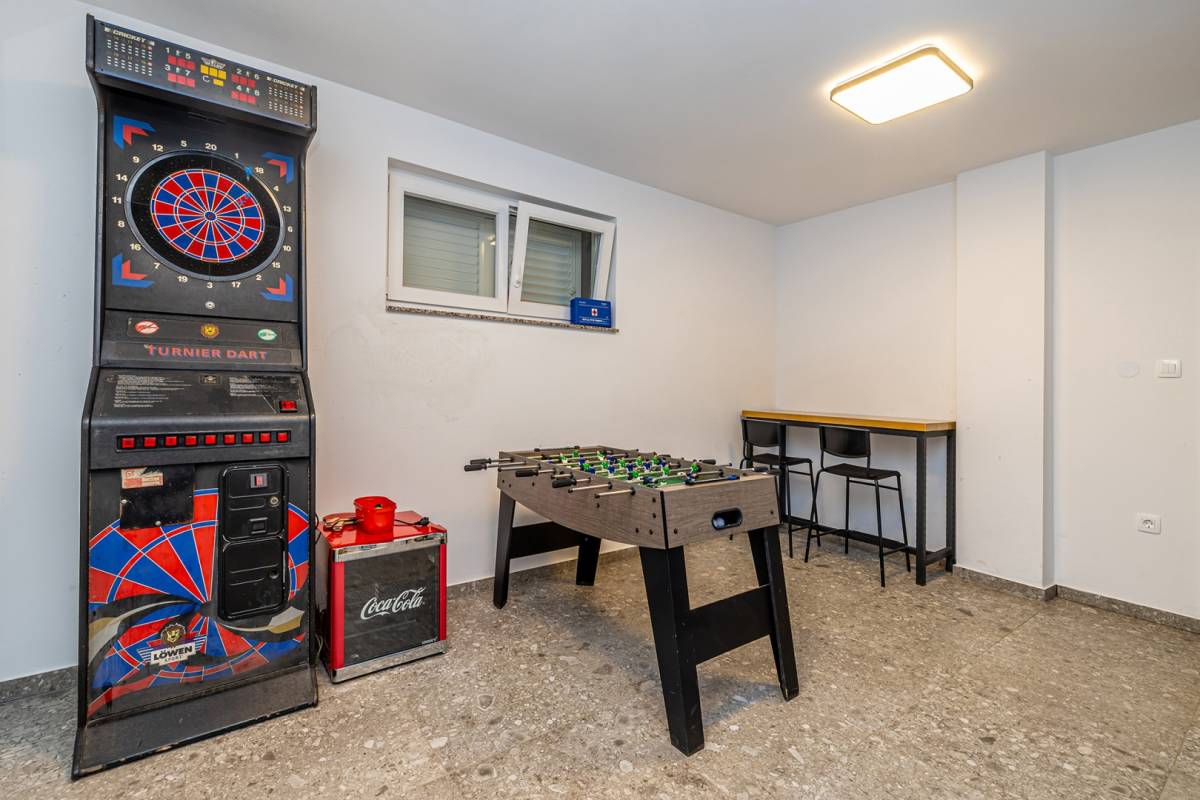 Prizemlje kuće prenamijenjeno je u prostor za igru i zabavu te u wellness prostoriju sa saunom, jacuzzijem i kupaonicom.